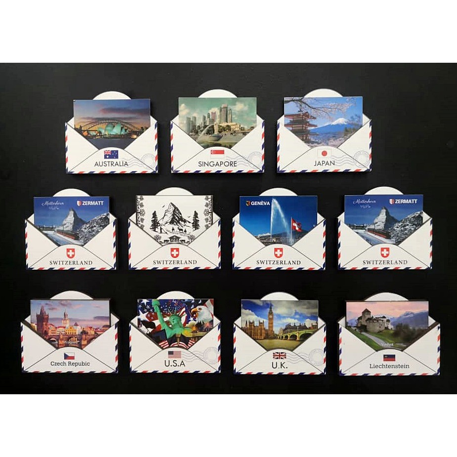 [B1] Envelope Wooden Fridge Magnets ~ Various Country