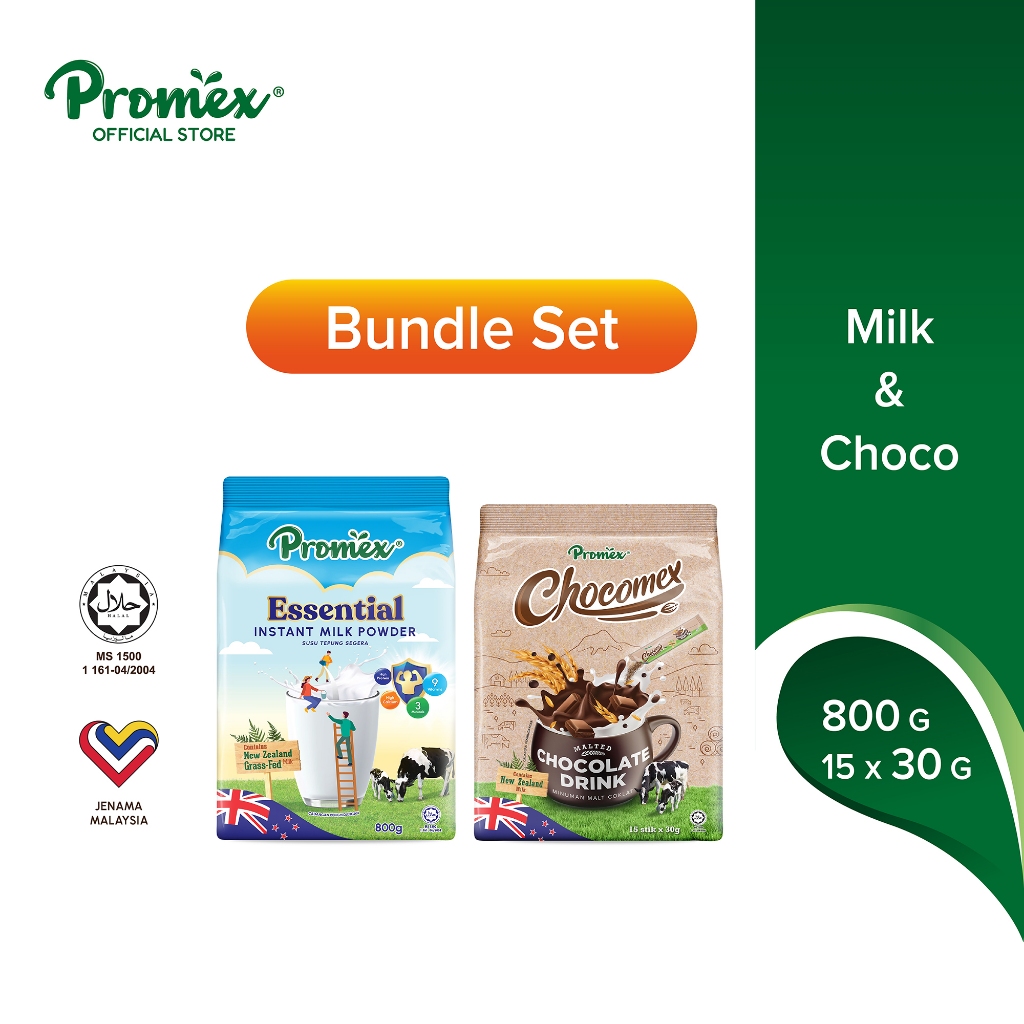 [BUNDLE] Promex Essential Milk 800g + Promex Chocomex Malted Chocolate Drink 30g x 15s