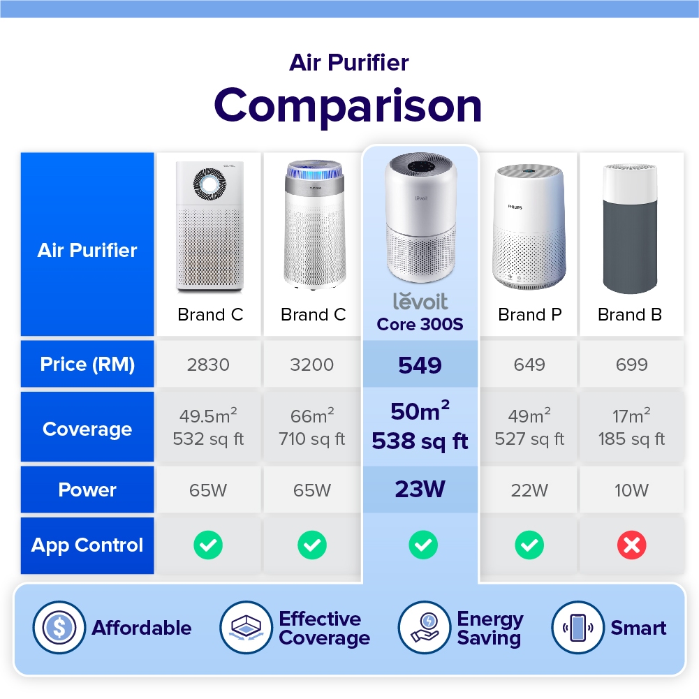 Levoit Core 300S Smart Air Purifier Hepa Filter With Smart App Control Coverage 50 ㎡ / 538 sq. ft / 2Y Warranty