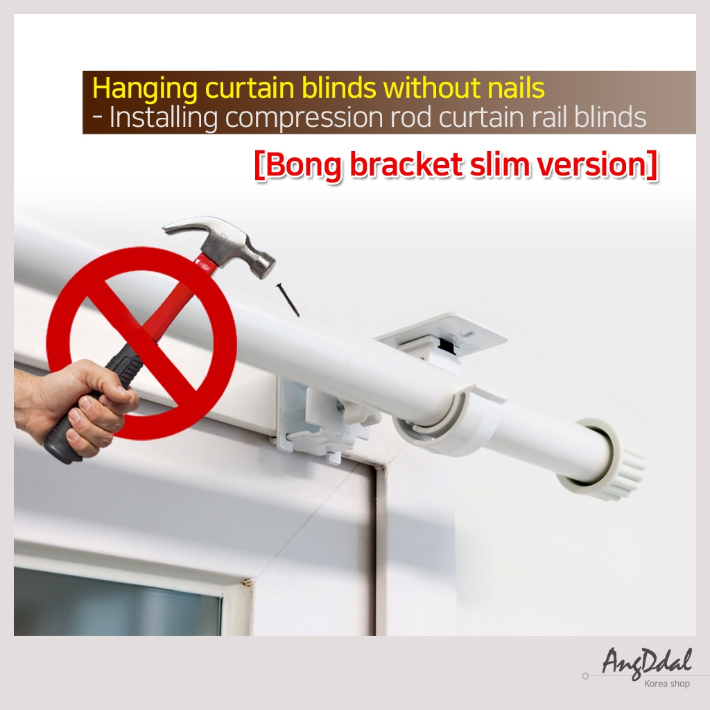 [Bong bracket slim version] Hanging curtain blinds without nails/ Installing compression rod curtain rail blinds