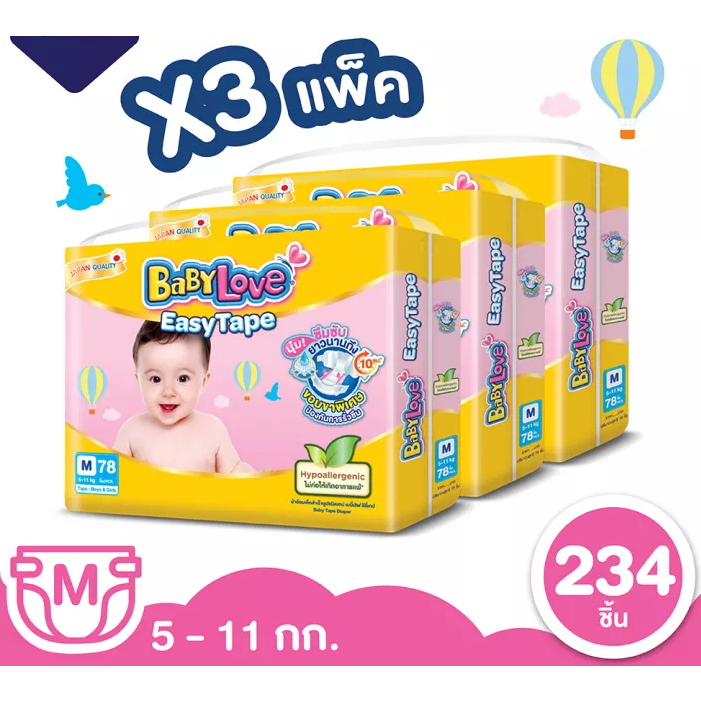 [Bought Not Used Boxed For Sale] BabyLove Easy Tape Baby Love Diapers Model M 3 Packs 234 Pieces (Pack Of 78 Pieces)