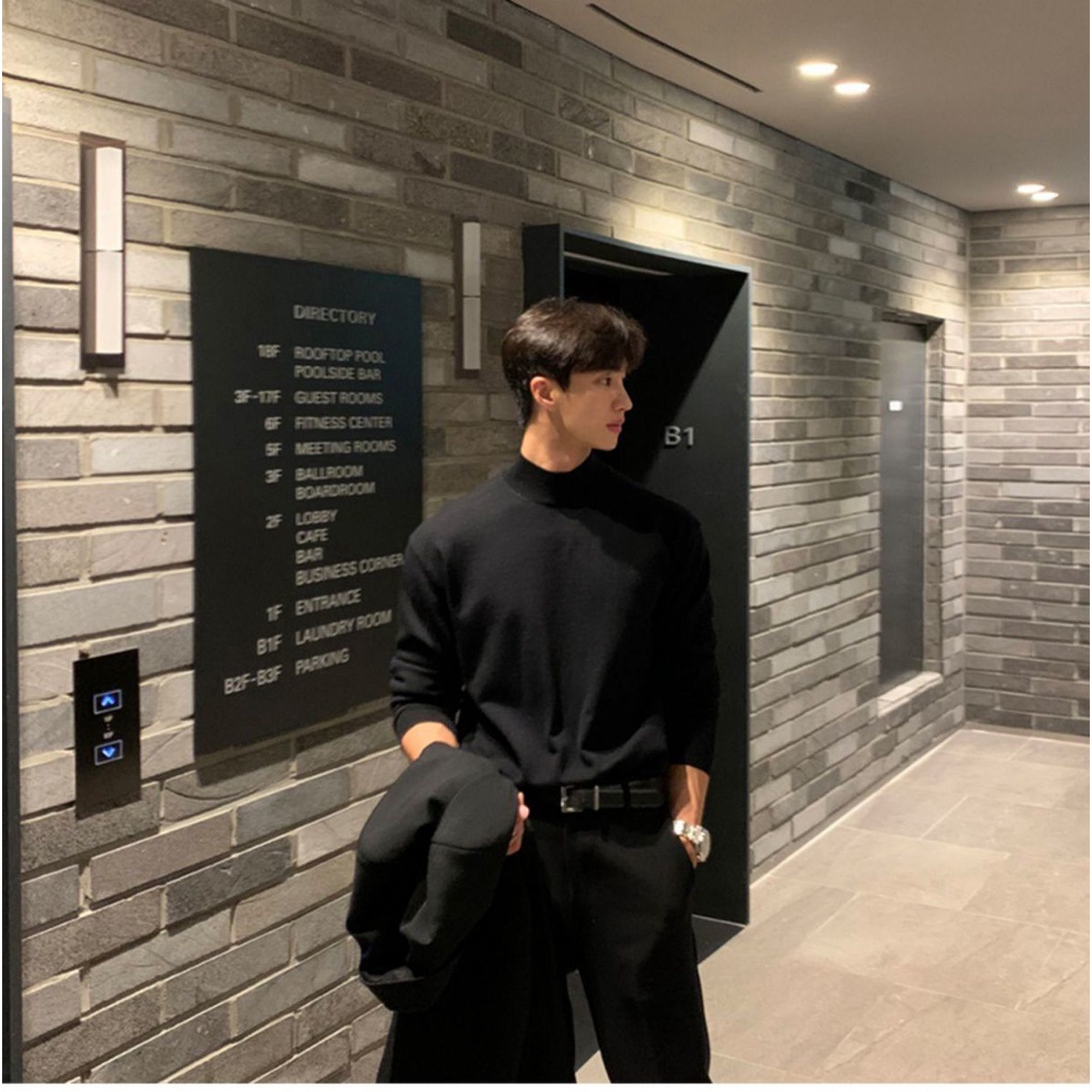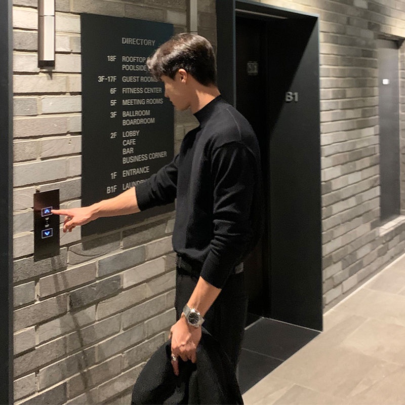 #Boys Sweater#Spring New Style Half Turtleneck Sweater Men Korean Version Trendy Hong Kong Inner Base Solid Color Knit