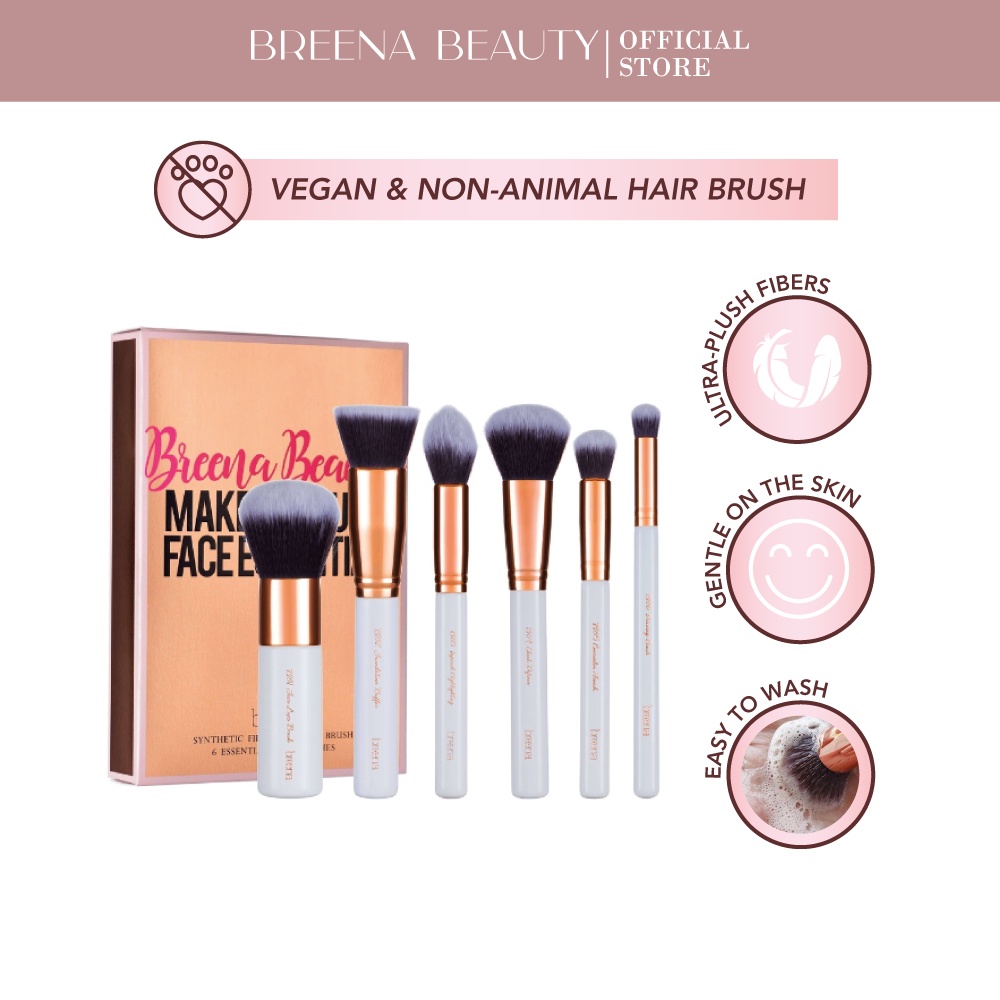 BREENA BEAUTY Face Essential Makeup Brush Kit : High Quality, Soft, Vegan Makeup Brushes Set / 6 pcs