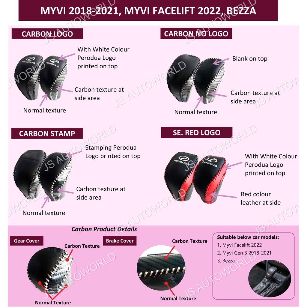 [CARBON] MYVI 2022 FACELIFT BEZZA MYVI GEN3 Gear Knob Cover Handbrake Cover Perodua Aksesori Kereta Bezza 2020-2022