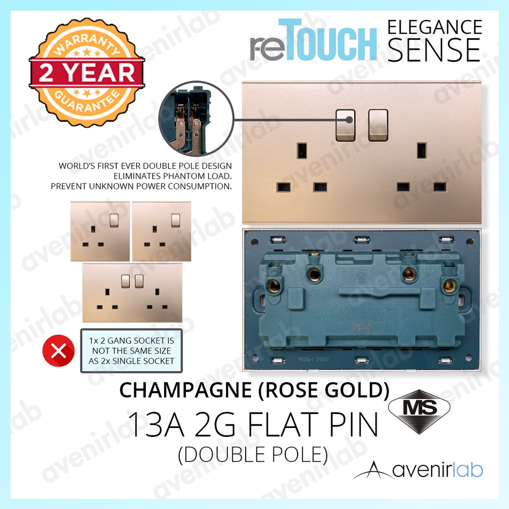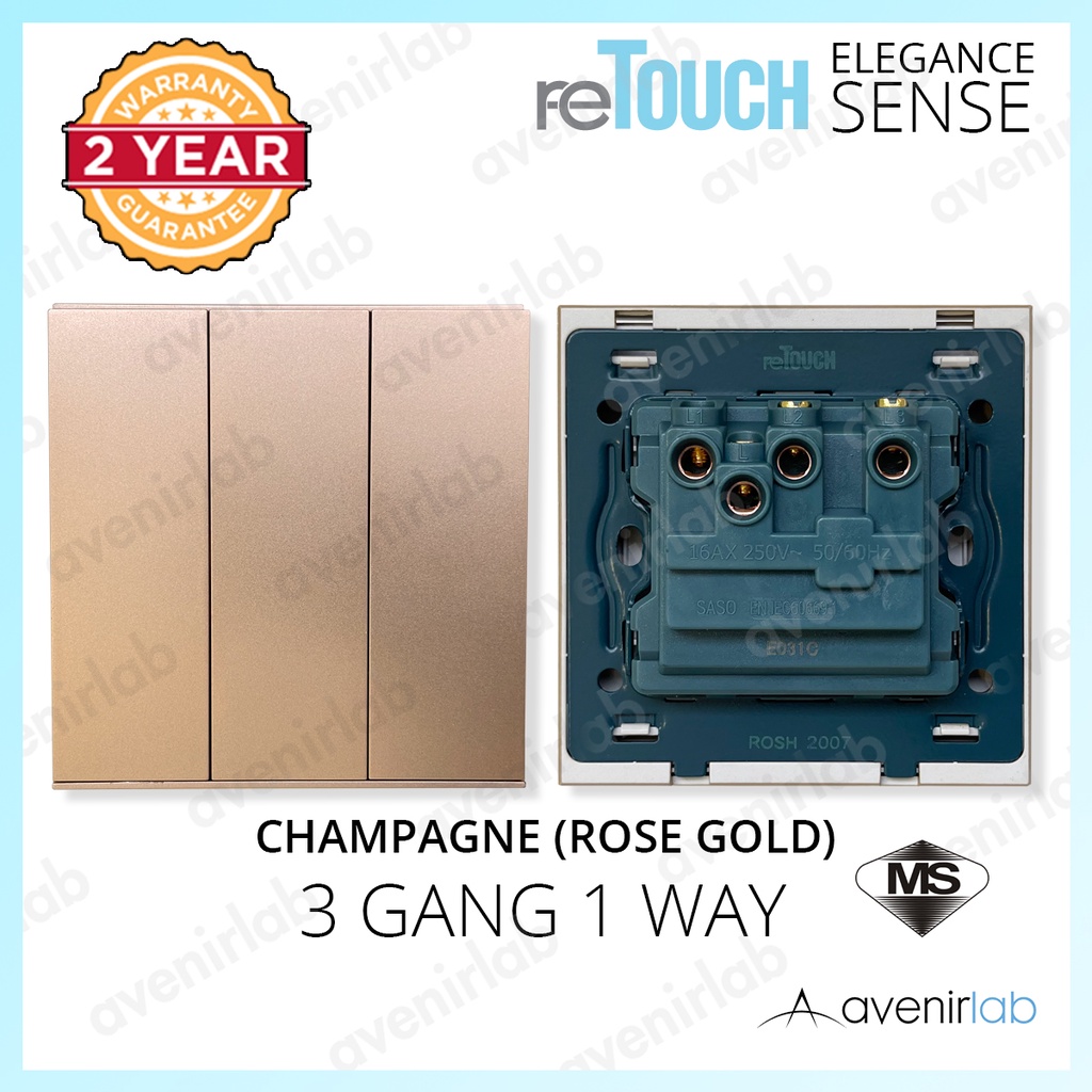 [CHAMPAGNE] reTouch Switch Elegance Sense 16A Wall Switch 13A 15A 20A Socket Plug Data TV Astro Outlet SIRIM Approved