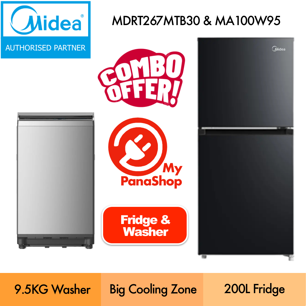 [COMBO] Midea Top Load Washing Machine & 2-Door Fridge ( 7.5KG - 12.5KG & 200L ) MA100W75 - MA200W125 & MDRT267MTB30