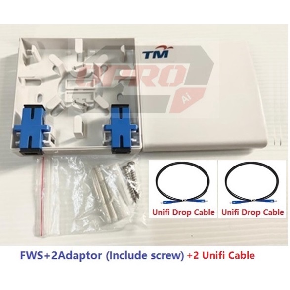 [COMBO] Premium Fiber Wall Socket (FWS) / 2 Port Fiber Optic Terminal Box / Junction Box - Indoor TM Unifi c/w Adaptor