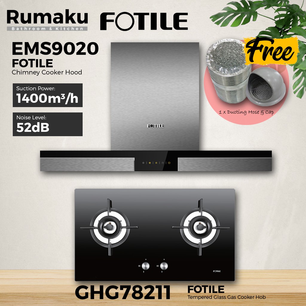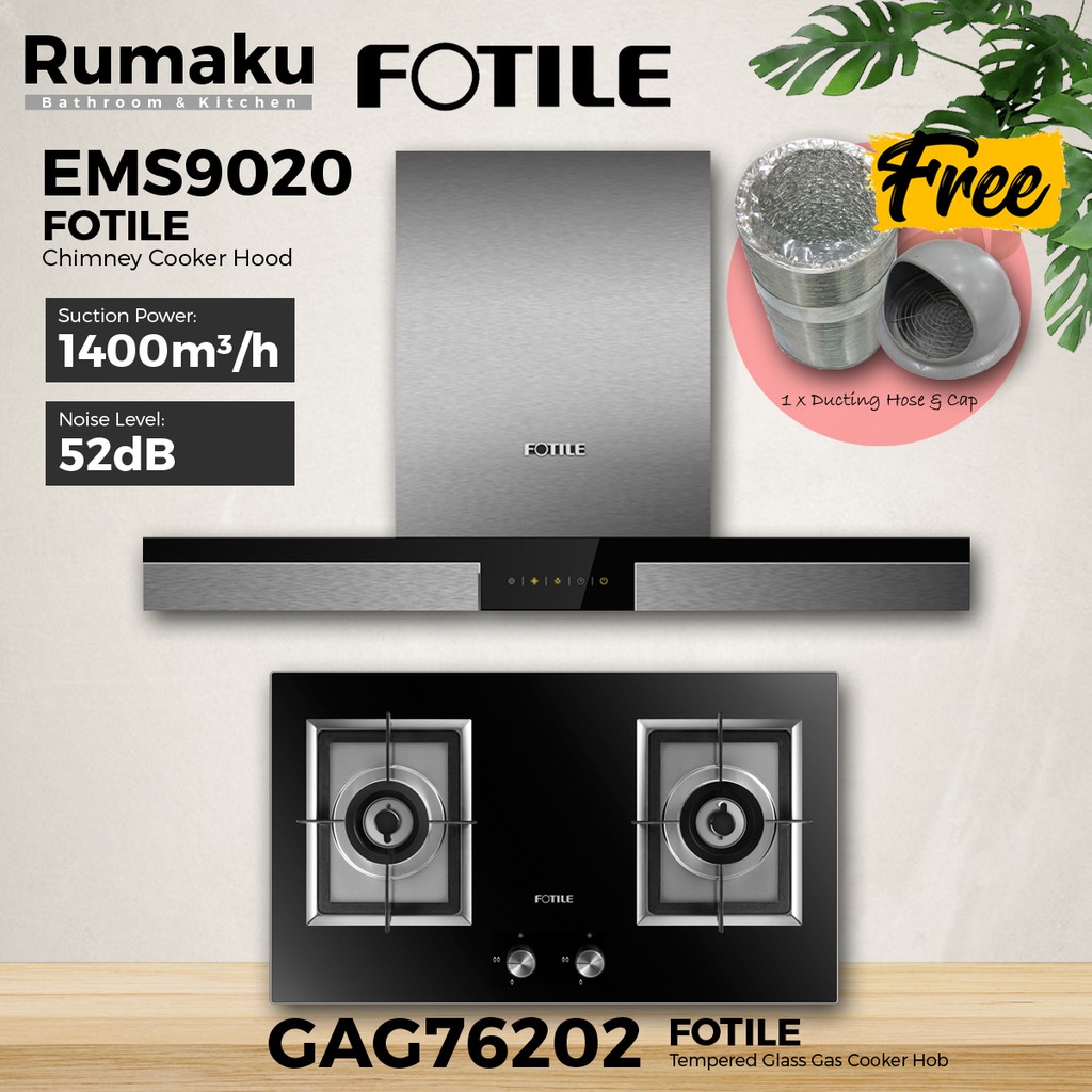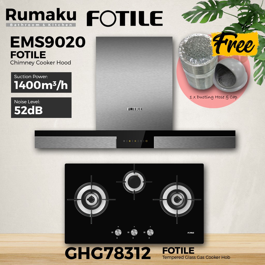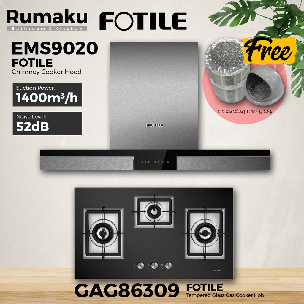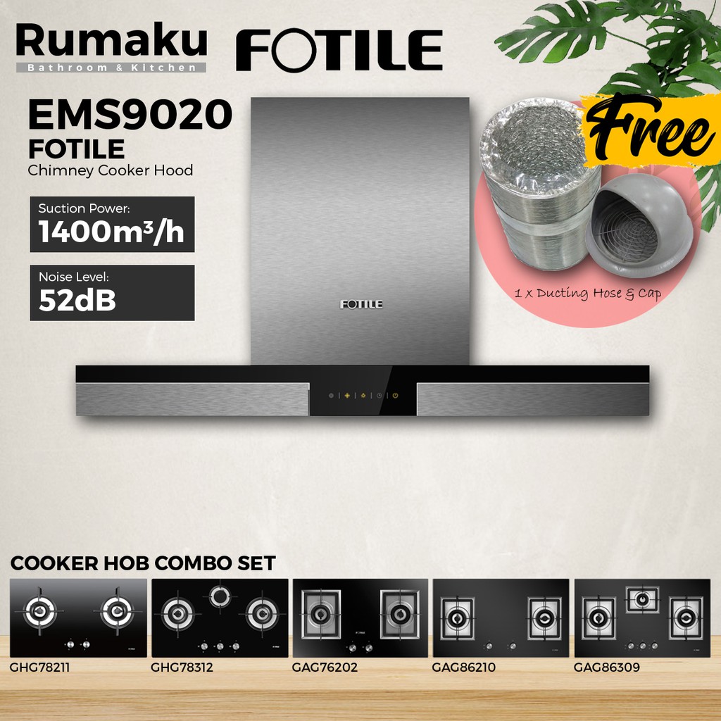 [COMBO SET] FOTILE EMS9020 Chimney Cooker Hood + Built-In Gas Cooker Hob [FREE Ducting Hose & Cap] Dapur