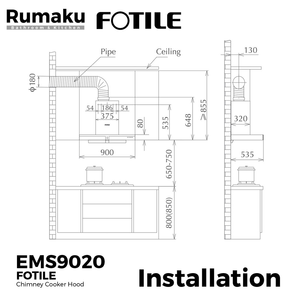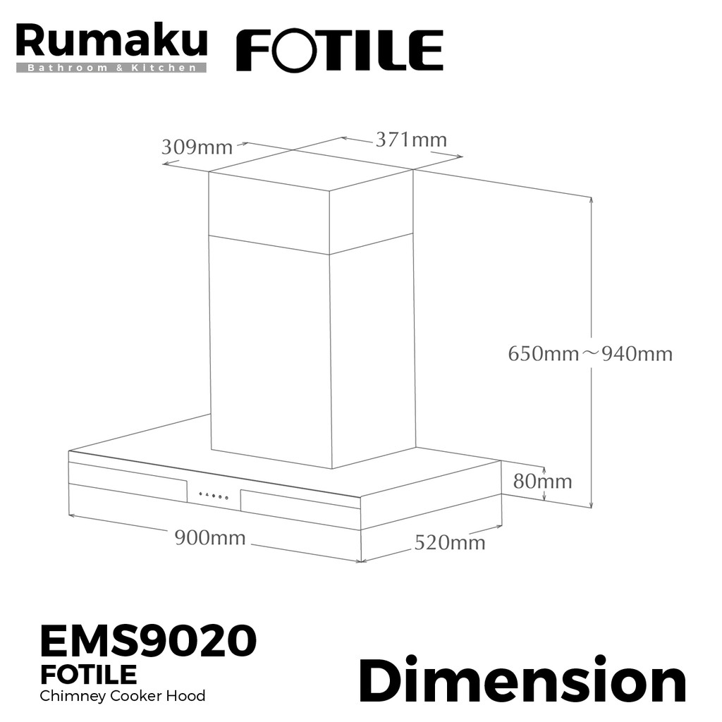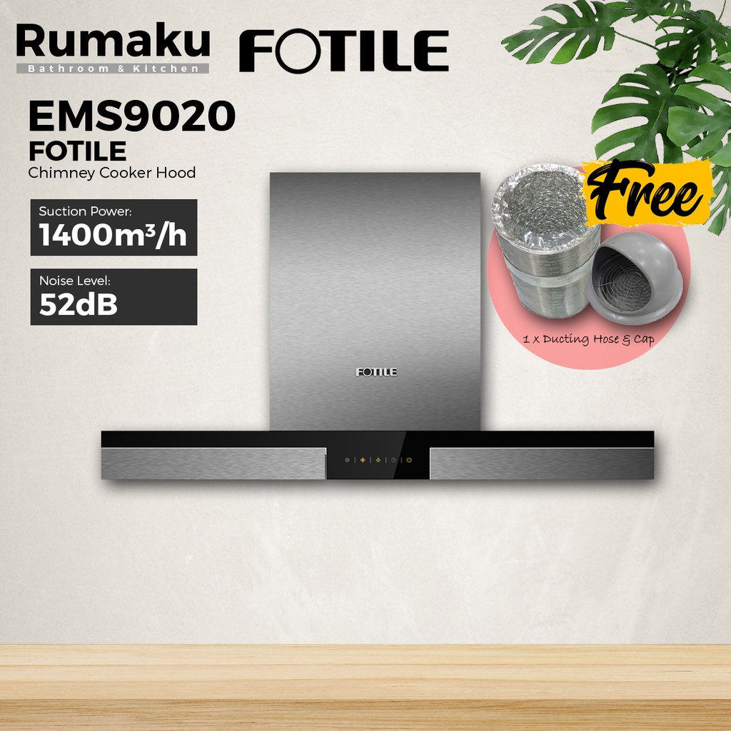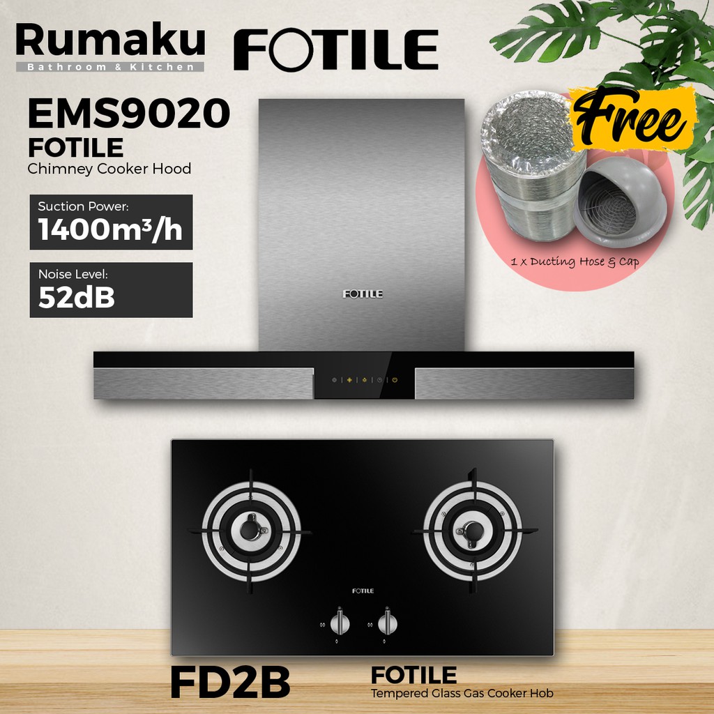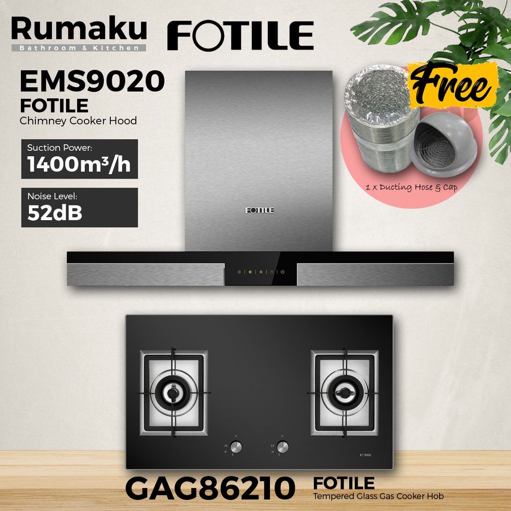 [COMBO SET] FOTILE EMS9020 Chimney Cooker Hood + Built-In Gas Cooker Hob [FREE Ducting Hose & Cap] Dapur