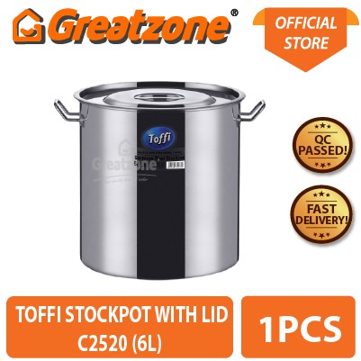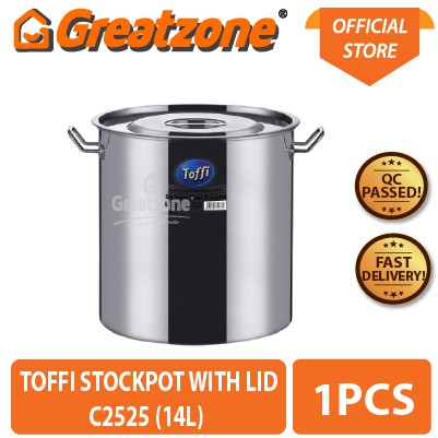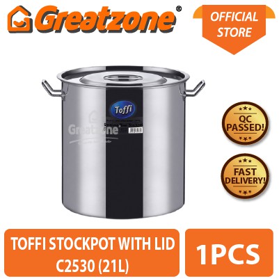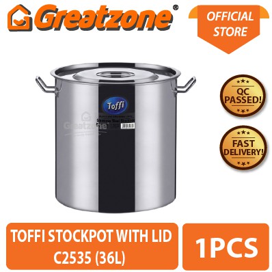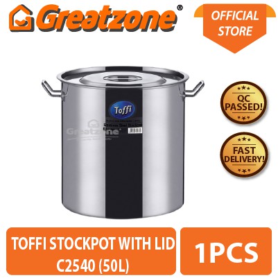 READY STOCK TOFFI STAINLESS STEEL DOUBLE HANDLE STOCK POT WITH LID 6LITRE / 14L / 21L / 36L / 50L