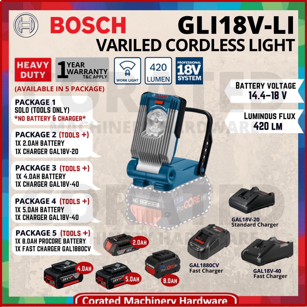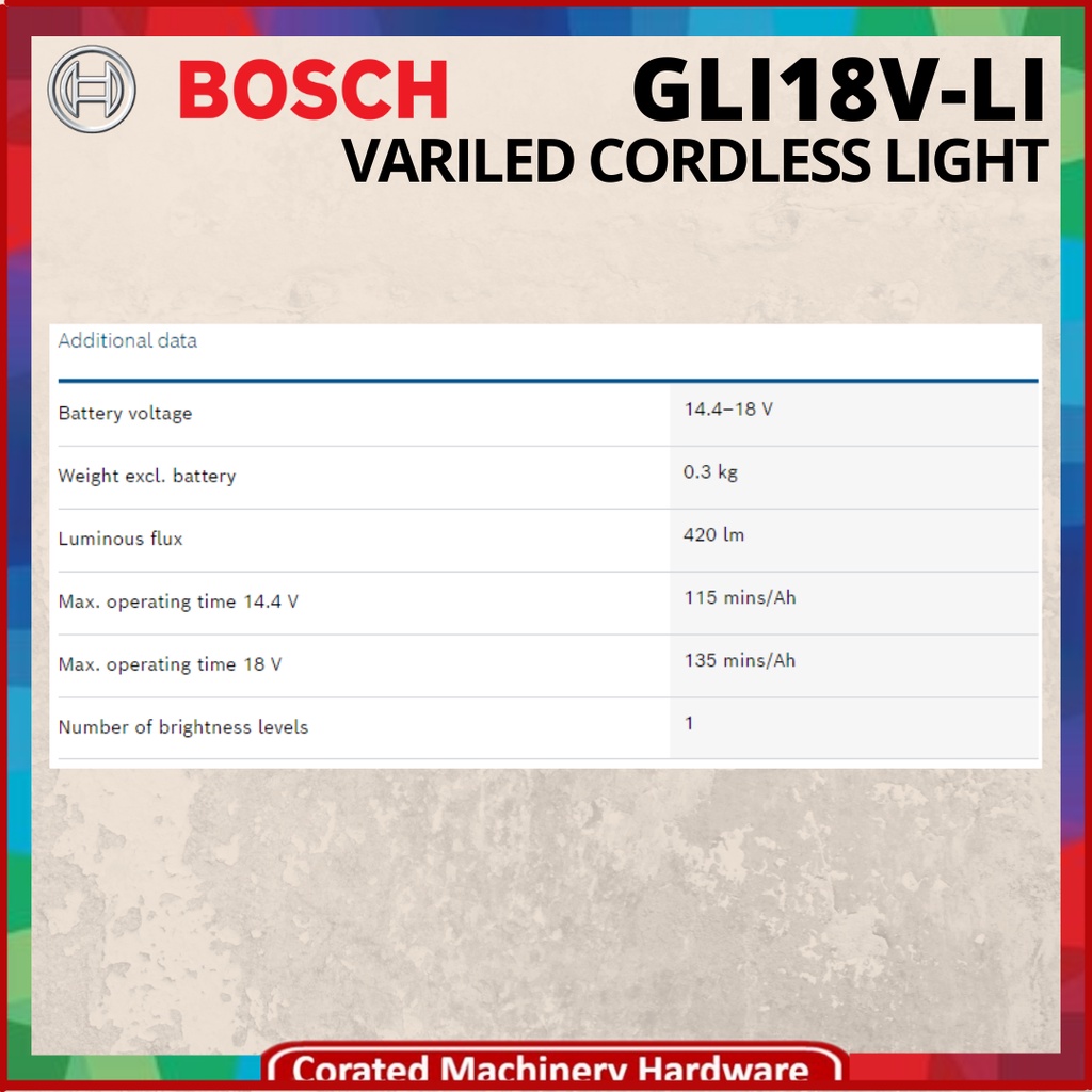 [CORATED] Bosch GLI18V-LI VariLED 18V CORDLESS TORCH Solo / Complete with Battery & Charger (1 Year Warranty)