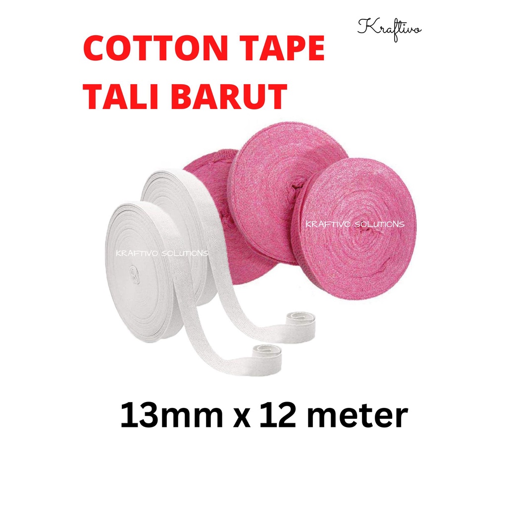 [ COTTON TAPE ] 13mm X 12m WHITE COTTON TAPE / PINK COTTON TAPE / PITA TALI BARUT PUTIH & MERAH