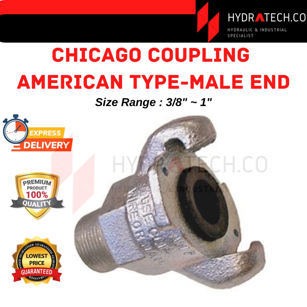 [COUPLING] Carbon Steel 2-Lug Air Hose Fitting US Type Male End BSPT/ Air Hose Coupling / Chicago Coupling