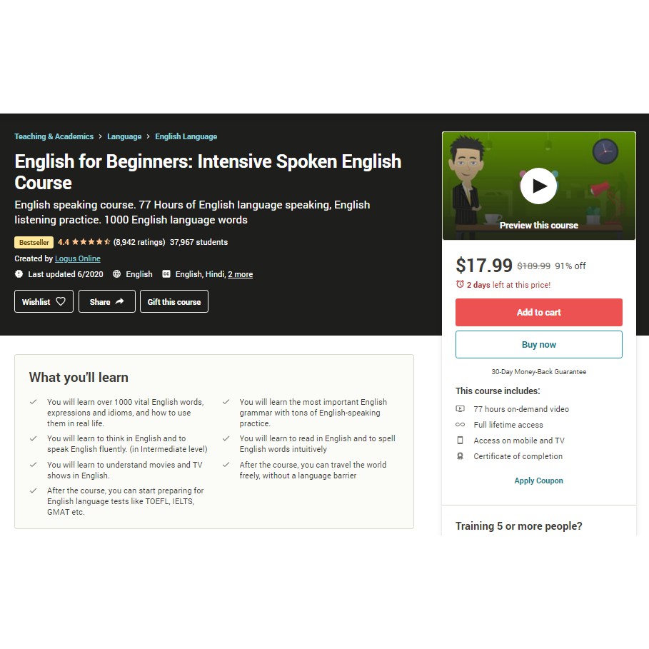 [COURSE] Udemy - English for Beginners: Intensive Spoken English Course