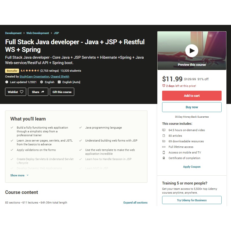 [COURSE] Udemy - Full Stack Java developer - Java + JSP + Restful WS + Spring