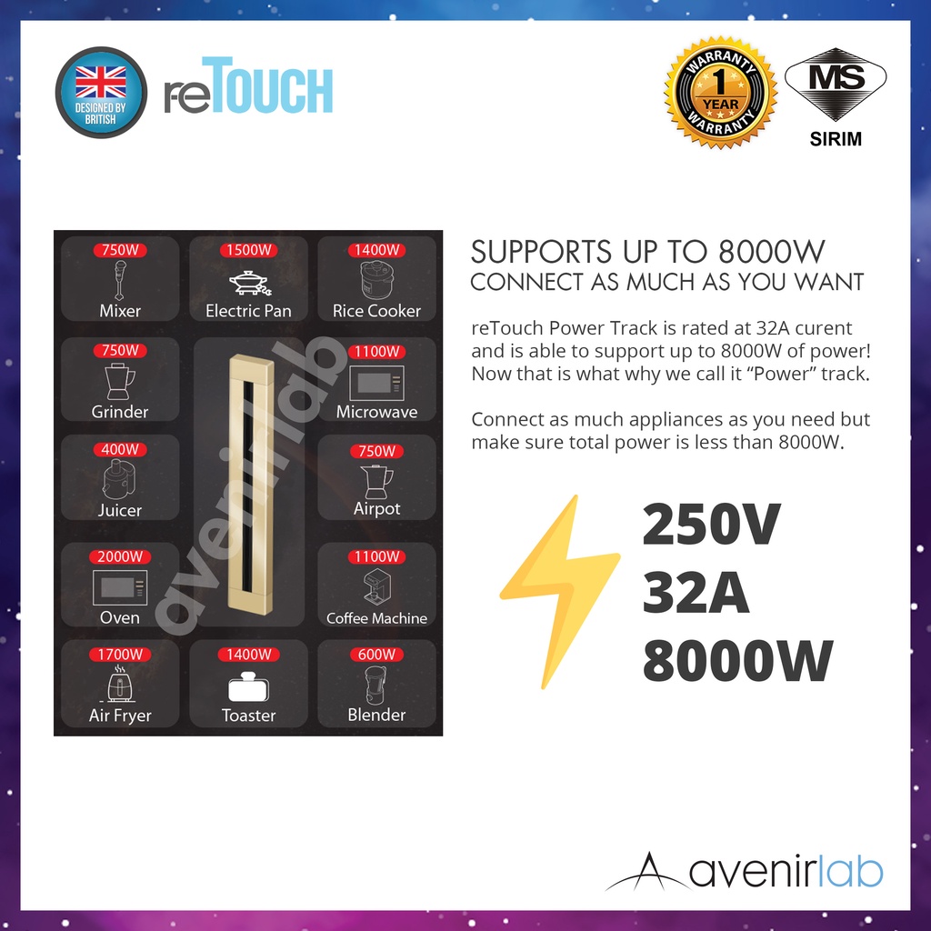 [CUSTOMIZE] reTouch Power Track 32A Surface Track and Conceal Track Customize Length SIRIM Approved
