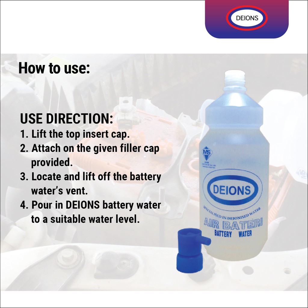 [Car Care Essential] Deions Deionised Battery Water (1L) 100% Pure & Clean Water, for battery or cosmetic