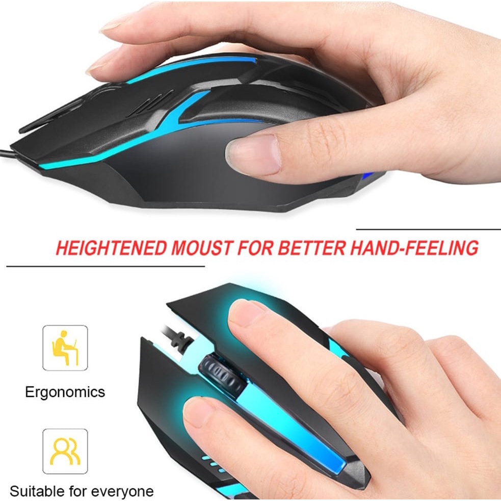 [Cheapest Murah Ready Stock] USB Optical Wired Gaming Ergonomic Mouse With Auto Sync RGB LED Light & 1200 DPI Sensor