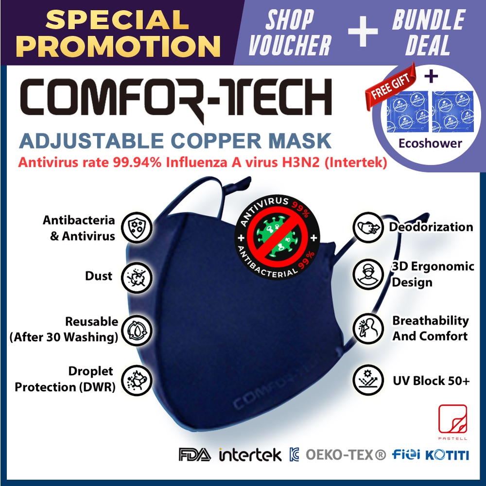 [Comfor-Tech Copper Mask]Antibacterial Antivirus Reusable Washable 4 Layers Adjustable Copper Mask / FDA