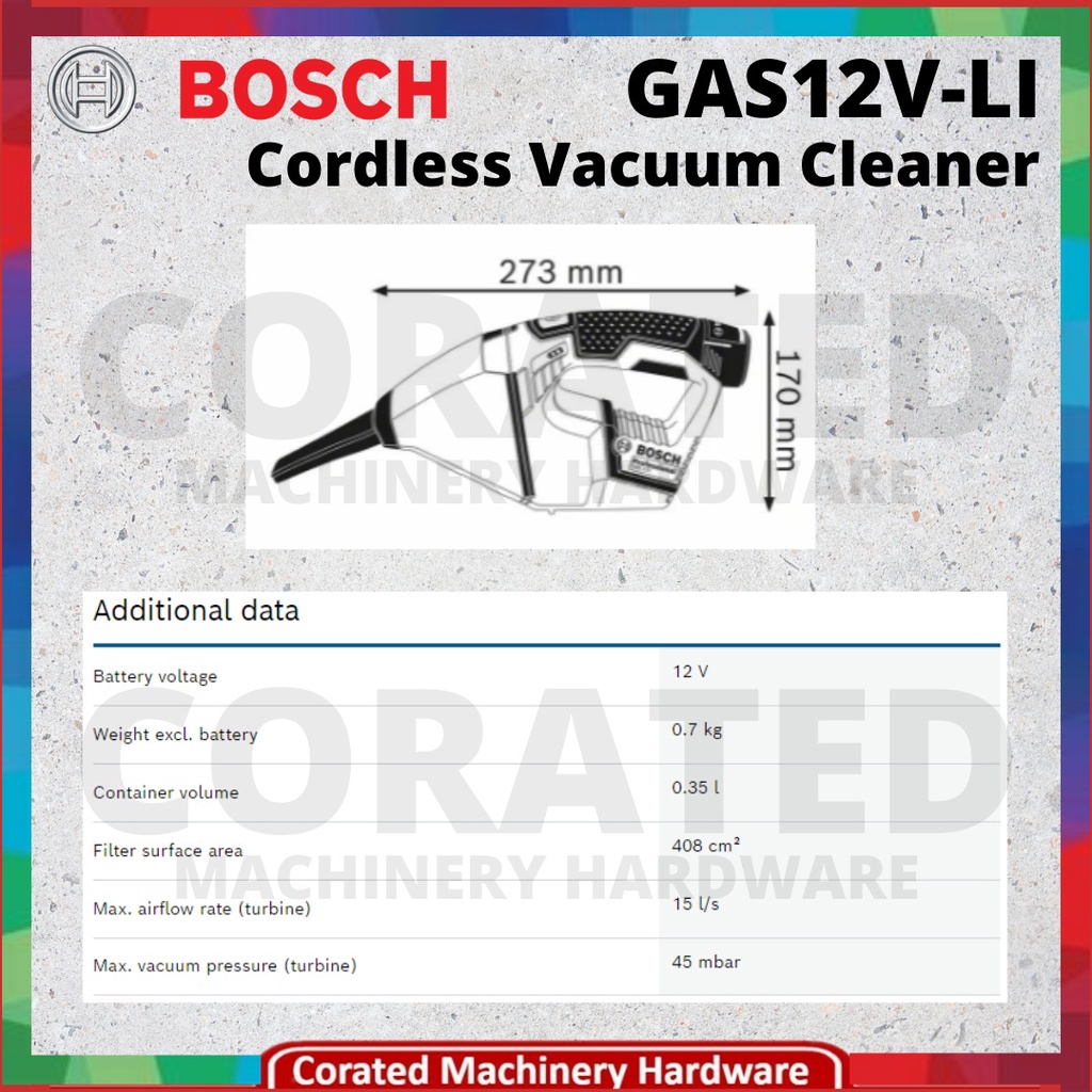 [Corated] Bosch GAS12V-LI 12V Vacuum Cleaner Solo / Complete With Battery & Charger (1Year Warranty)