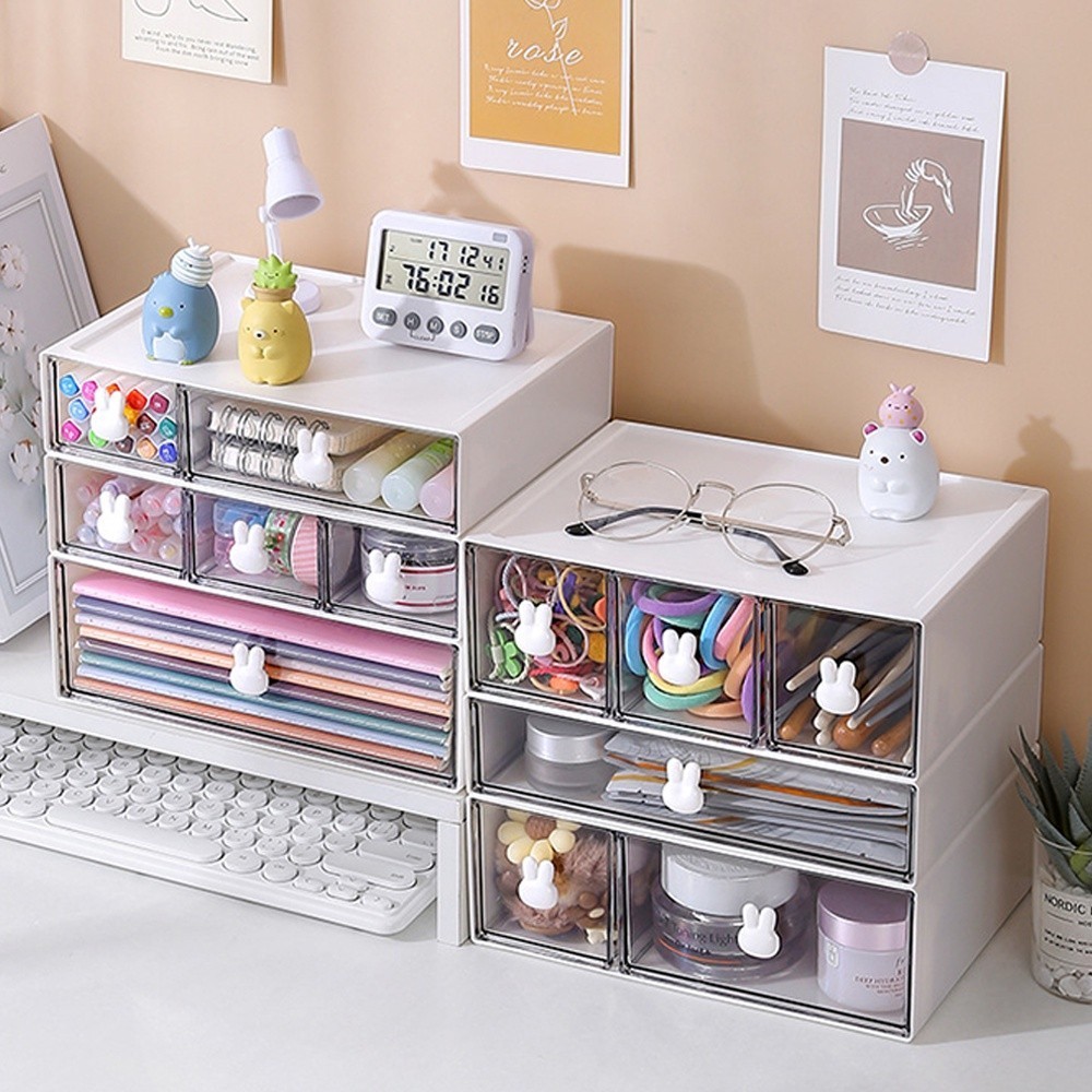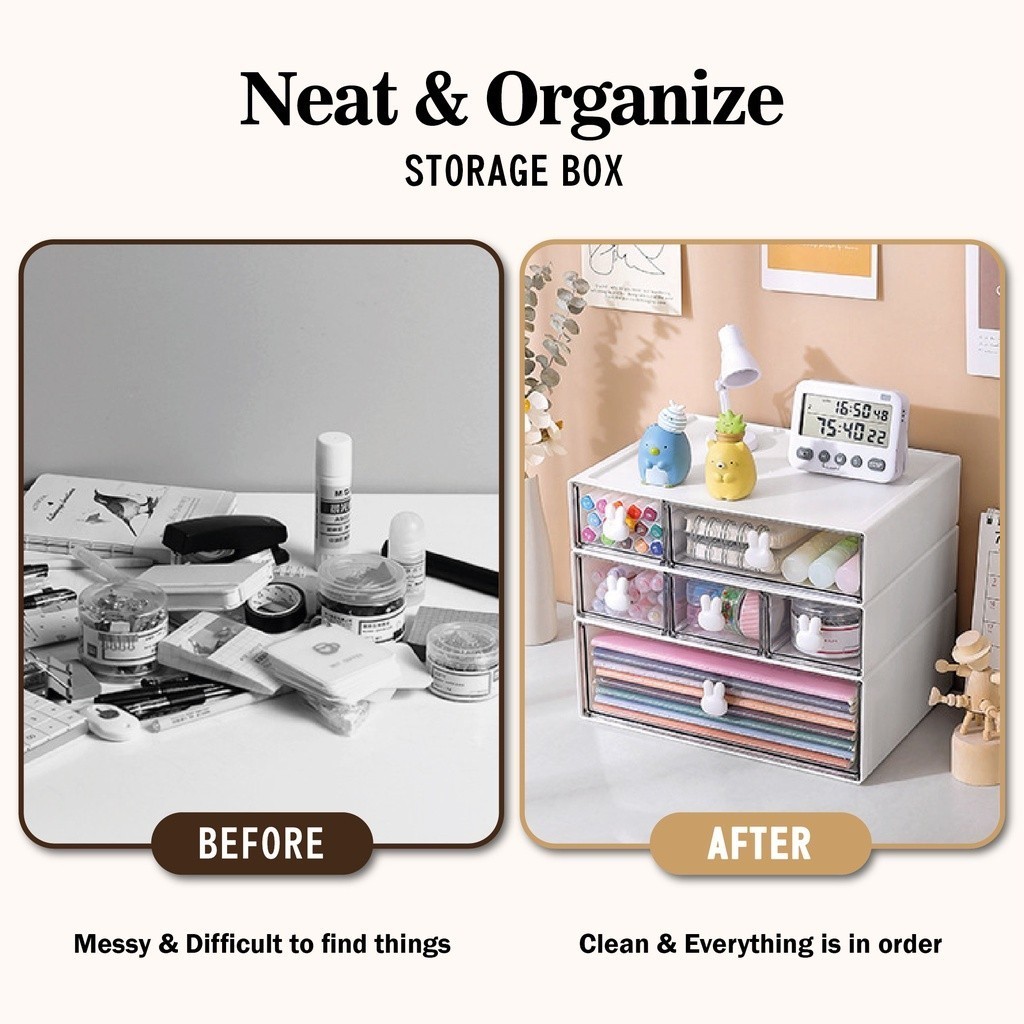 [DC] Desk Organizer Transparent Drawer Container Stationery Box Accessories Stackable Laci Plastik Barang Kemas Kecil