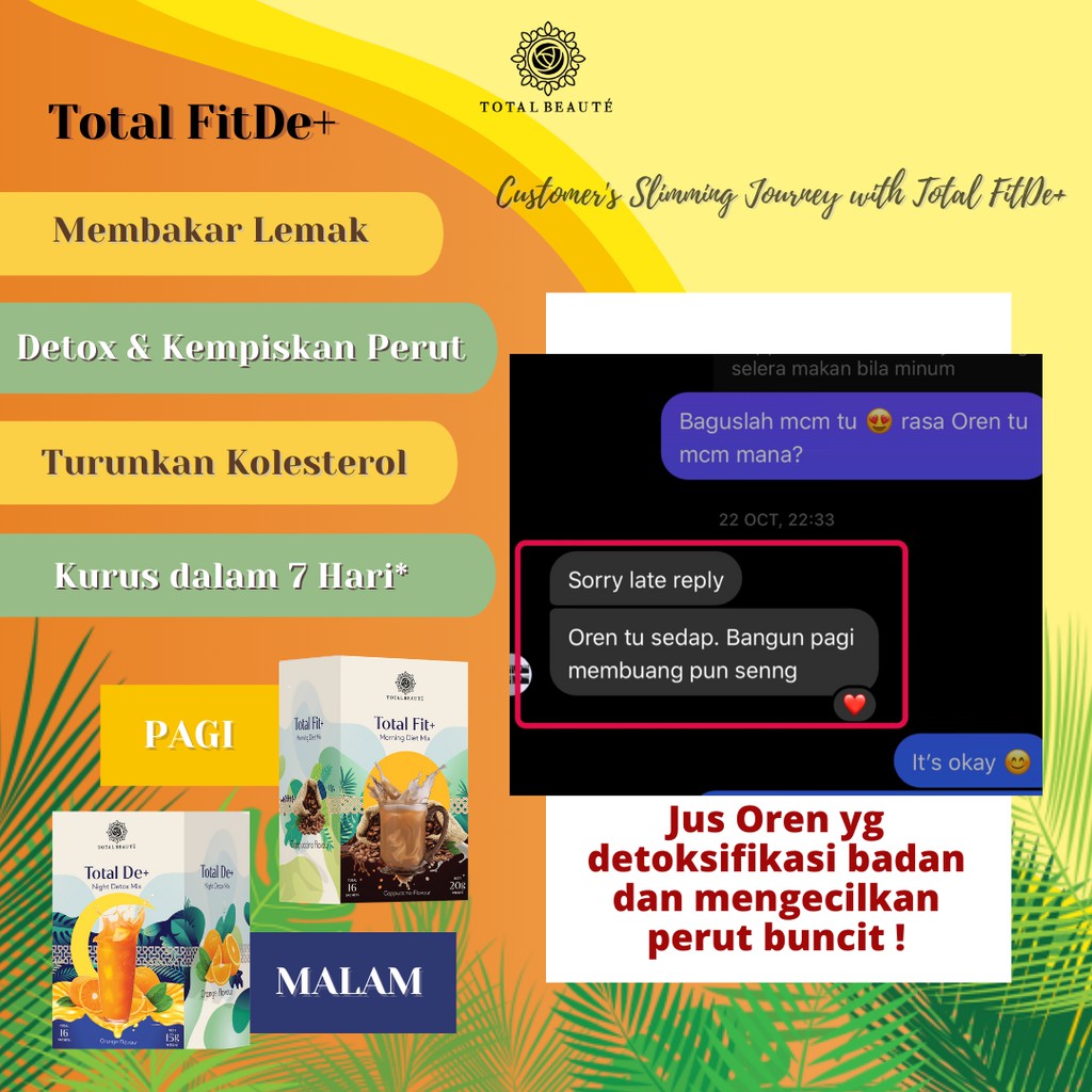 [DETOX] Total De+ Detox Juice with Rich Vitamin C 高维他命C排毒橙汁瘦肚腩正品 - Total Beaute