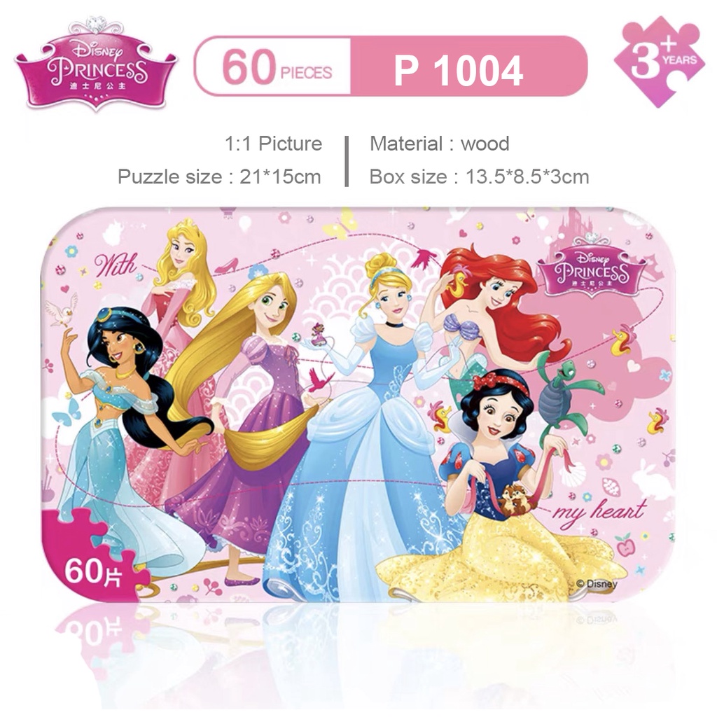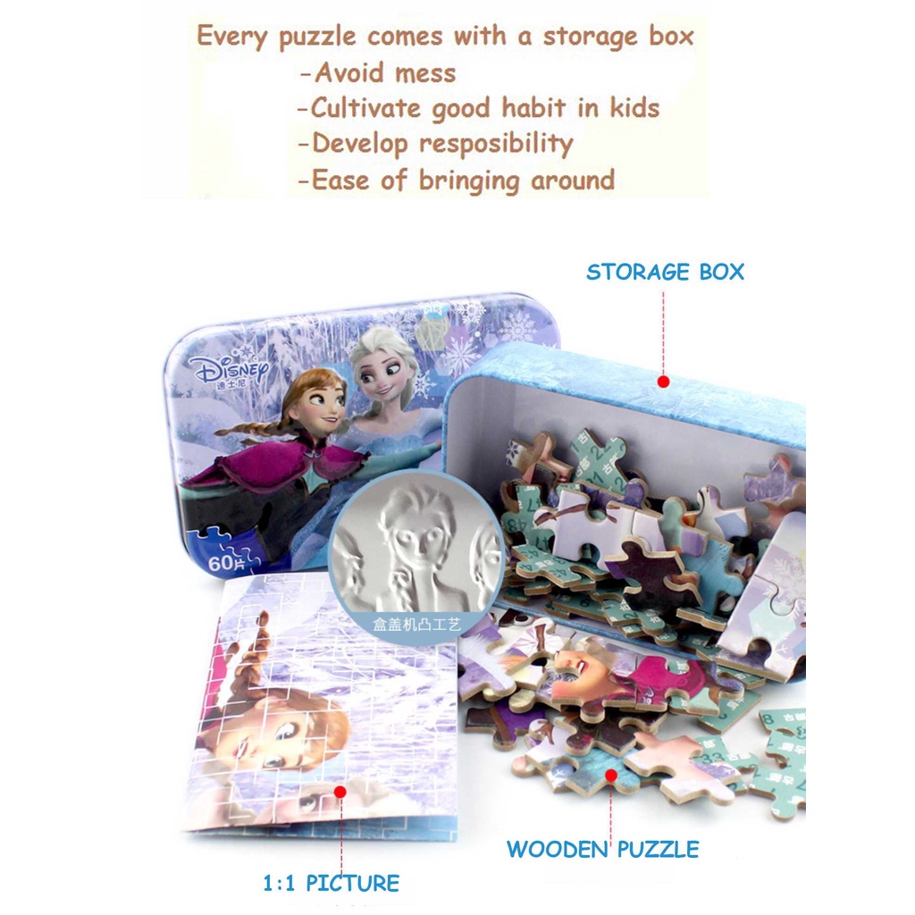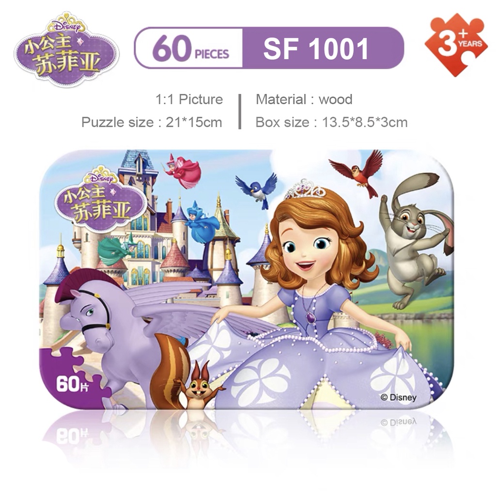 [DISNEY] Frozen puzzle wood /Princess/Sofia/Mickey/Pony Wooden Jigsaw Puzzle - 60pcs/100/200pcs(3D IRON BOX)