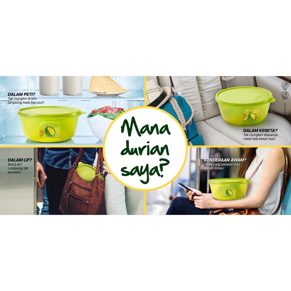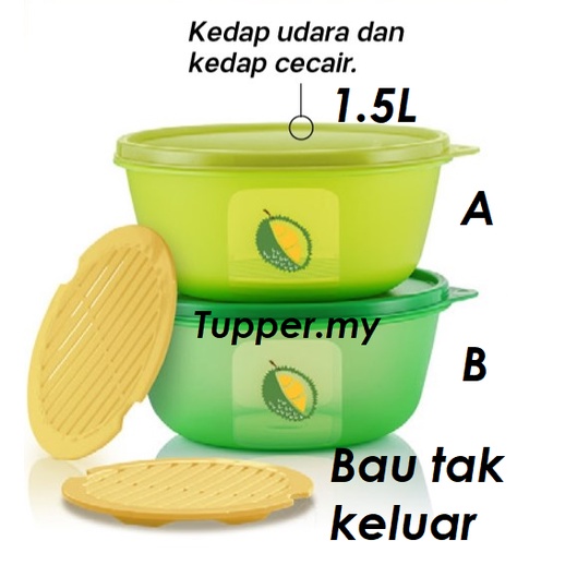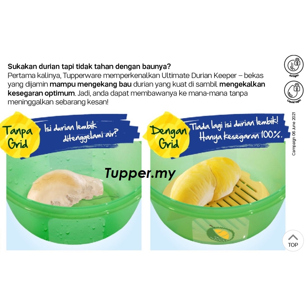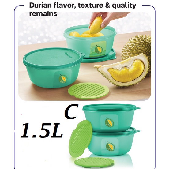 Tupperware Ultimate Durian Keeper With Grid Modular Bowl 1.5L Airtight Liquid Tight Green