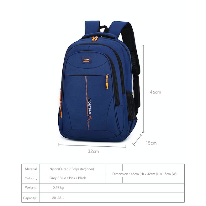 [ECOGROW] READY STOCK School bag Backpack Primary Secondary Student Bag Beg Sekolah Banyak Zip (Blue/Black/Grey/Pink)