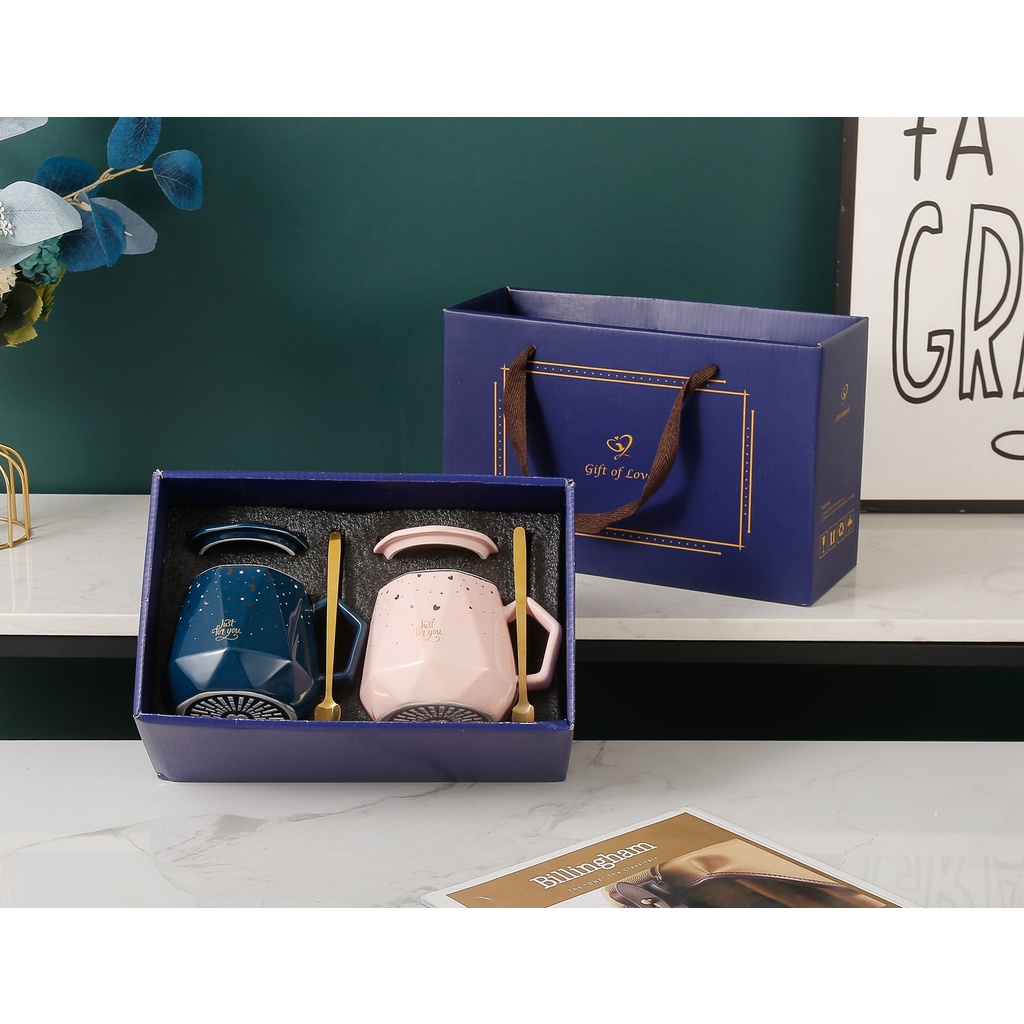 [EONMIR] custom name ceramic mug set with lid spoon gift coffee cup gift box Couple set