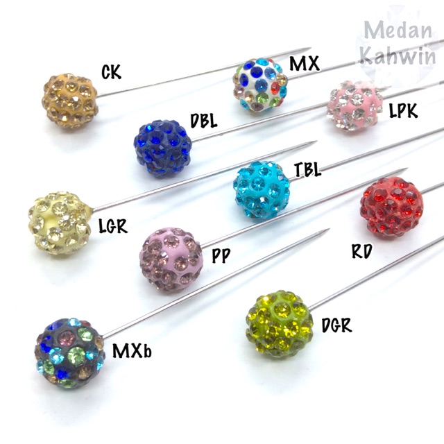 #EX0010B Peniti Pin Tudung Jarum Tudung Berkepala penuh Batu Crystal Halus Siap penutup @ 20 pilihan