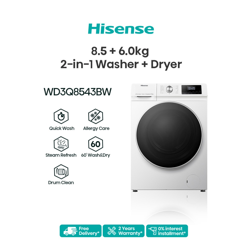[FREE Installation] Hisense 2 in 1 Front Load Washing Machine & Dryer (8.5/6kg-10.5/7kg) Silver WD3Q8543BW / WD3Q1043BT