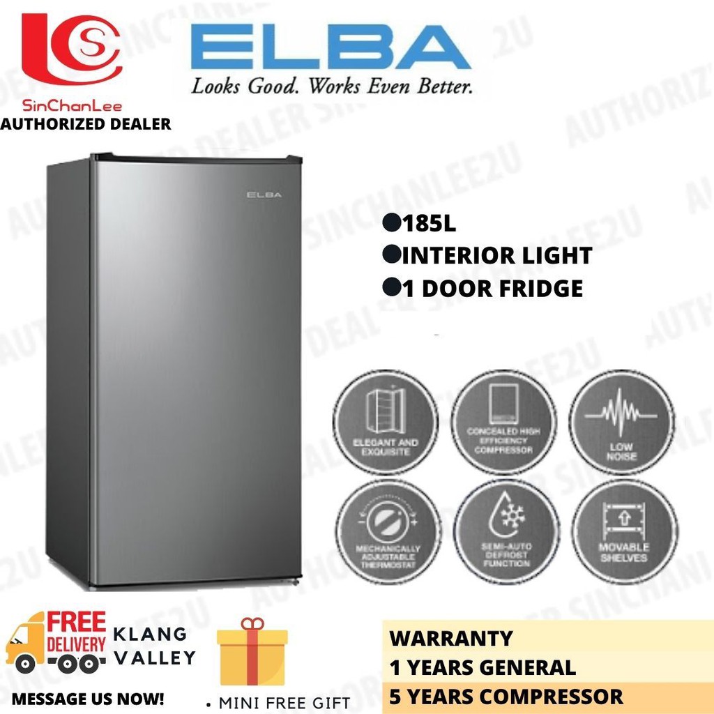 [FREE JUG KETTLE] [FREE DELIVERY TO KL & SELANGOR AREA ONLY] ELBA 185L SINGLE DOOR FRIDGE ERC1815(SV)