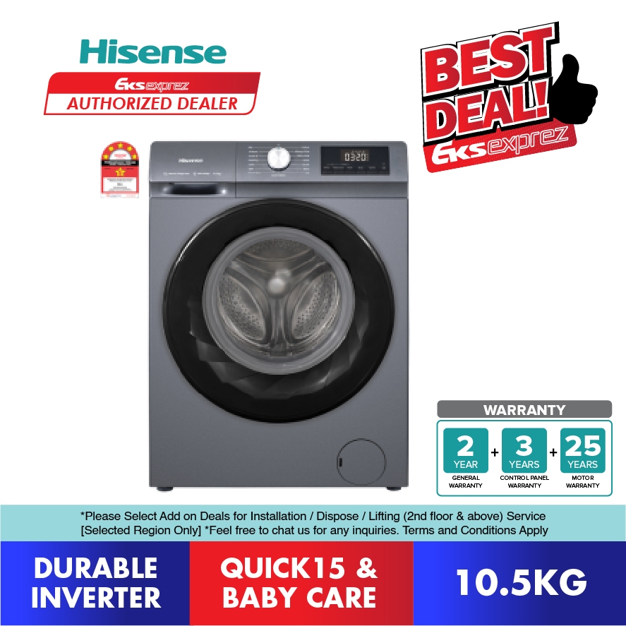 Hisense Mesin Basuh Hadapan Inverter 5 Bintang 10.5KG (WF105N1)