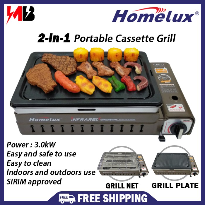 [ FREE SHIPPING ] Homelux Portable 2-in-1 Cassette Grill with Grill Pan Infrared Camping Butane BBQ Stove HPB-8008B