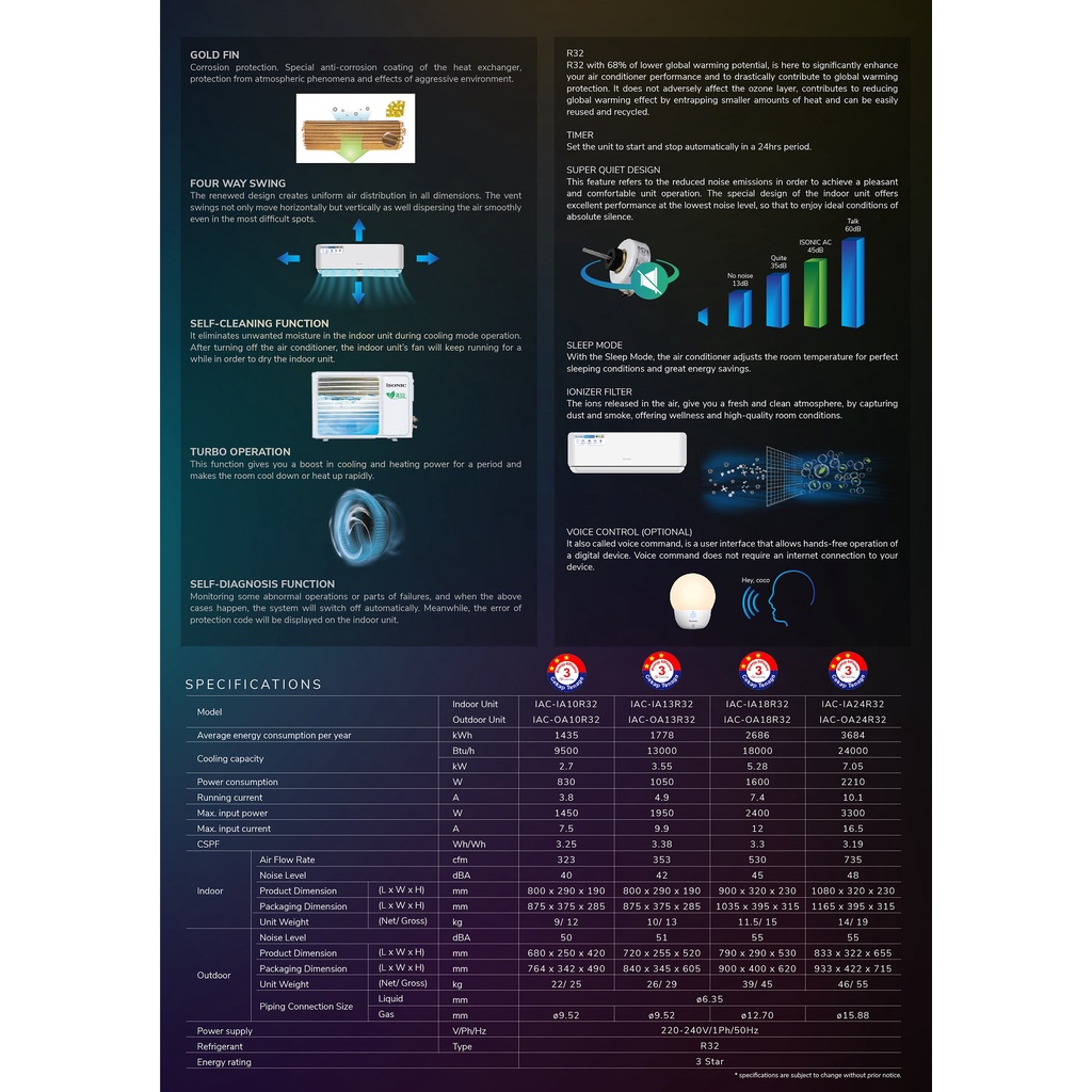 Isonic Air Cond R32 Coco Series 1.0HP / 1.5HP / 2.0HP [ IAC-IA10R32 / IAC-IA13R32 / IAC-IA18R32 ]