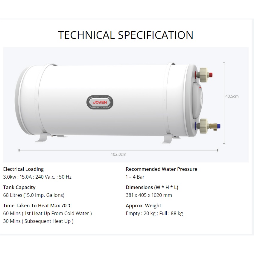 [FREE SHIPPING] Joven Horizontal Storage Tank Water Heater JH15 JSH25 JSH35 JSH50 JH68 JSH91