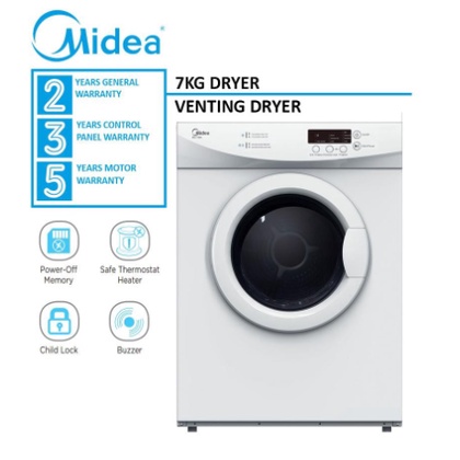 [FREE SHIPPING] Midea 7KG Vented Clothes Dryer MD100A70 Black LED Display / MD-7388 White / MD-100A70 Pengering Baju
