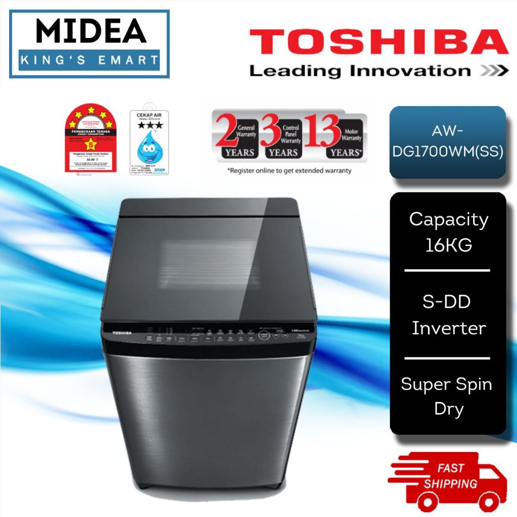 [FREE SHIPPING] TOSHIBA 16KG / 17KG Fully Auto Top Load DDM Inverter Washing Machine AW-DG1700WM(SS) / AW-DUM1800MM(SG)