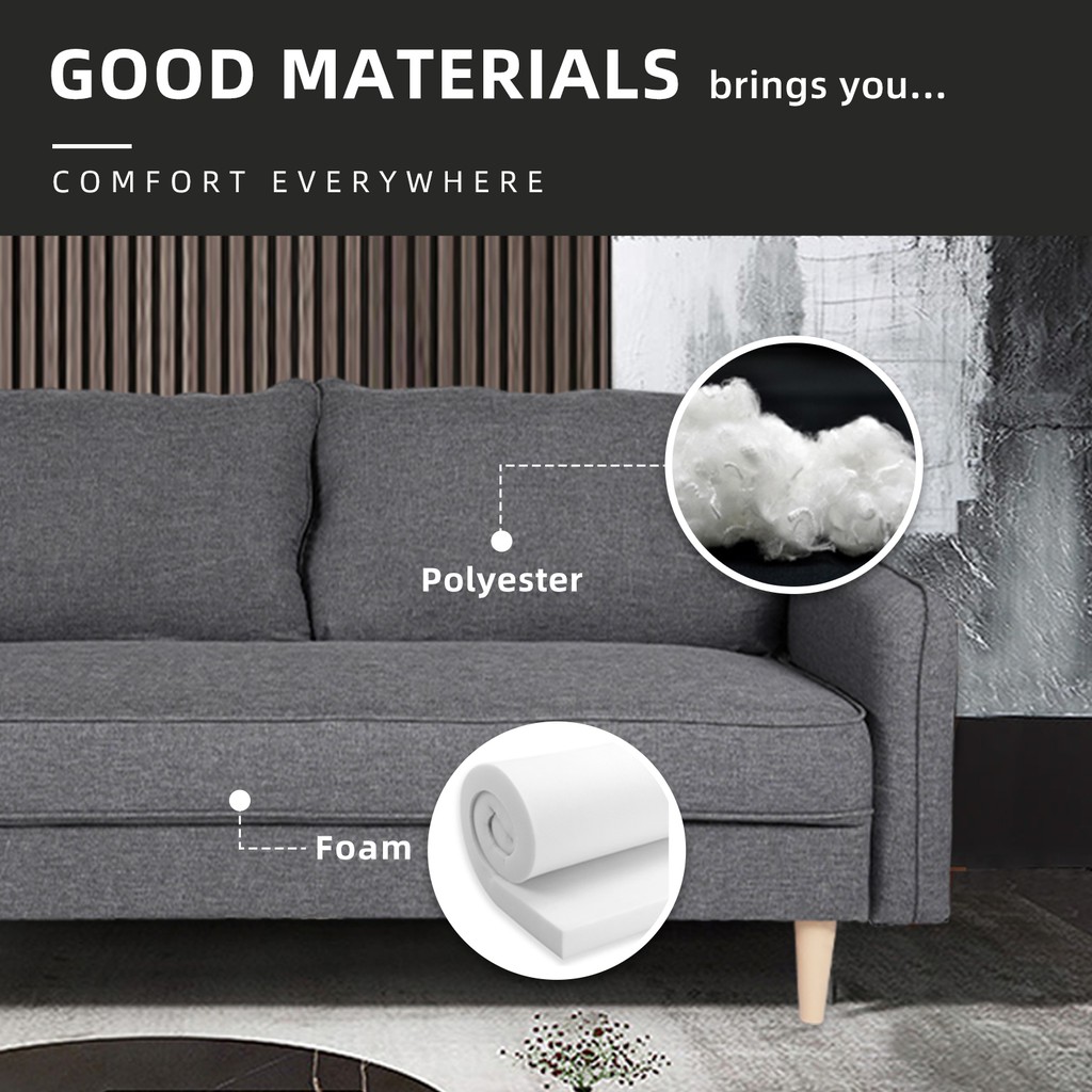 [FREE Shipping] Homez 3 Seater Sofa Set Linen Fabric Sofa PVC Leg Removable Pillow Cover Grey Clay Blue AE8001-3S