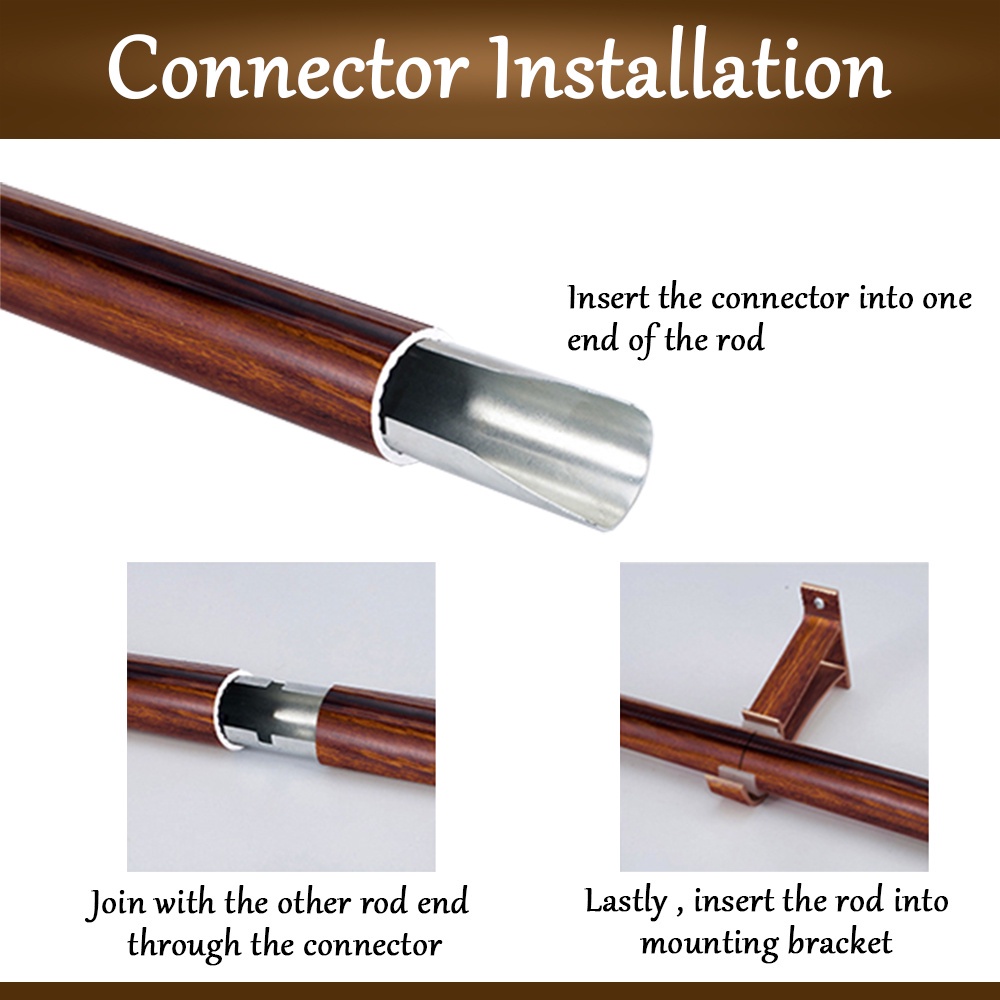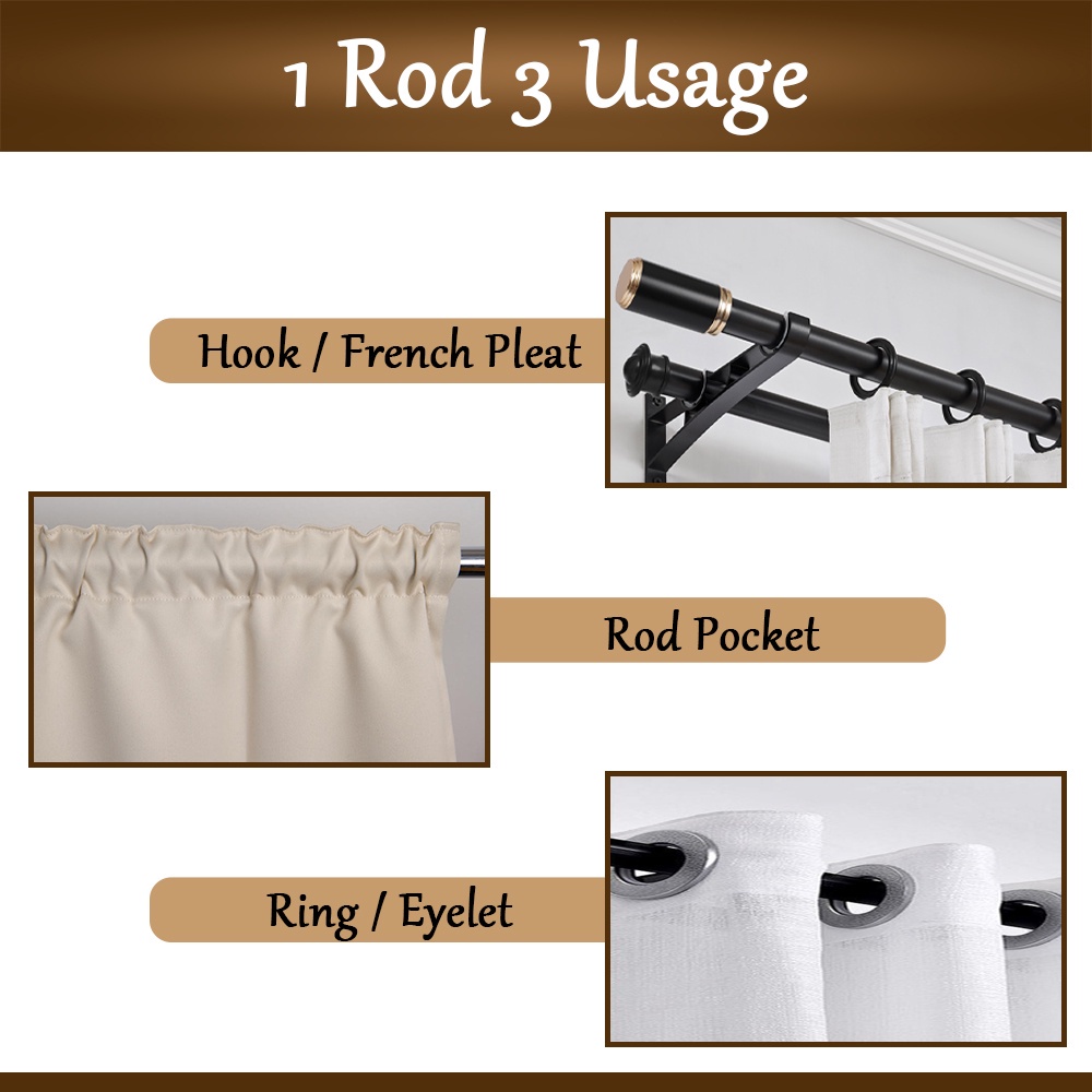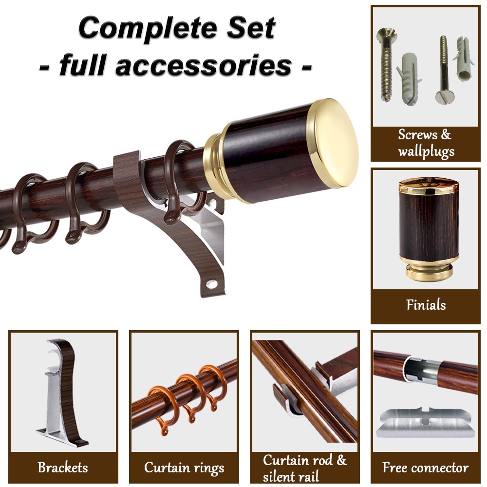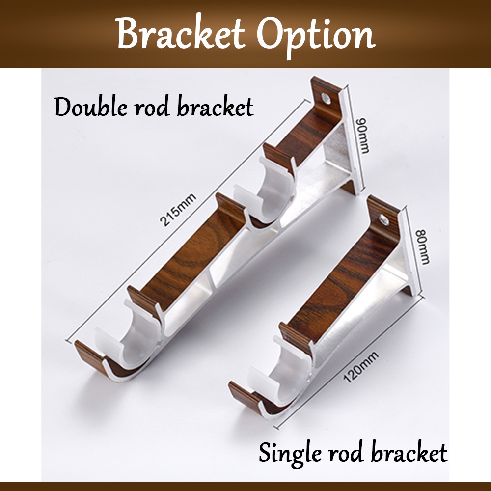 [FULL SET] Borong365 Single / Double Wood Design Aluminum Curtain Rod Batang Rod Kayu Langsir Rail Besi Rel Langsir Kayu