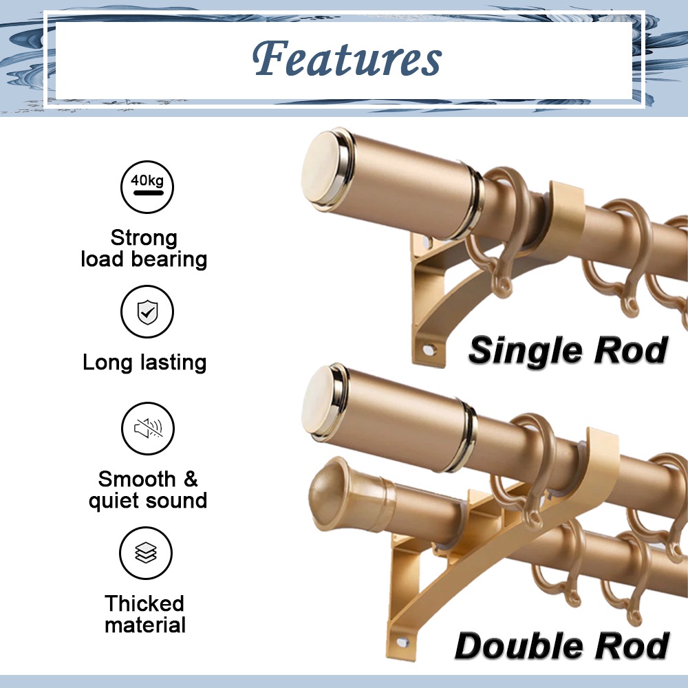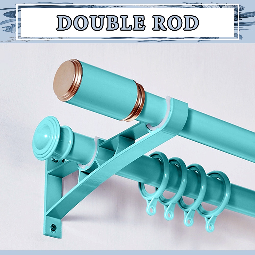 [FULL SET | DOUBLE ROD] Aluminium Window Curtain Rod With End Cap Finial Set For Hook/Eyelet Curtain