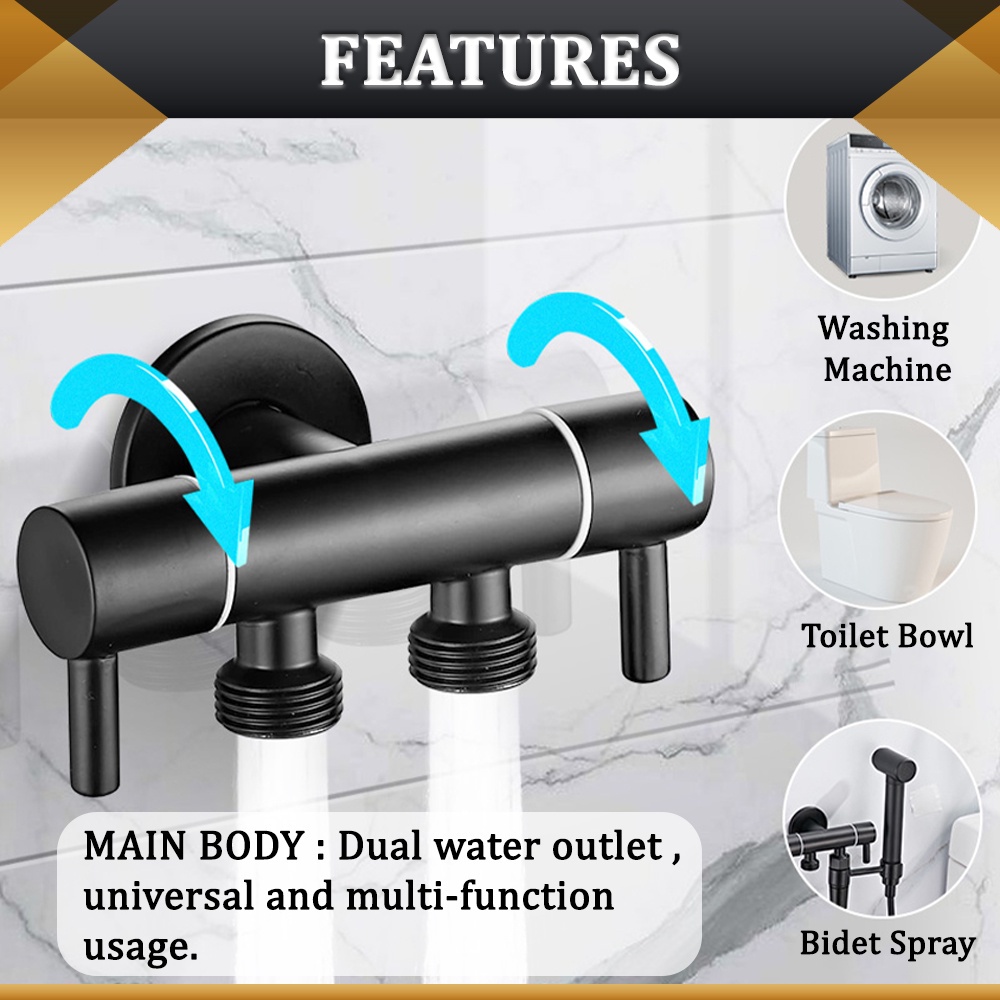 [FULL SET] Perfect Bath Dual Tap Bidet Spray Set Bathroom Pipe Paip Tandas Water Tap Bathroom Two Way Bidet Toilet Pipe
