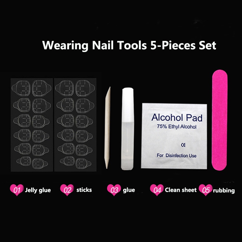 [Fake Nails+Free Glue] 24 Fake Nails With Glue Fake Nails French Fingernails With Flower Medium And Long Fingernails Popular Line Pattern Art Fake Nails For Girls