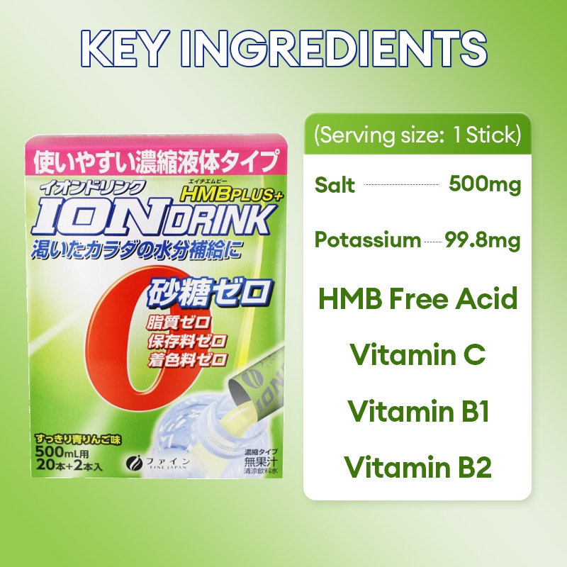 <Fine Japan> Ion Drink HMB Plus Sugar Free Mineral and HMB Drink with Apple Flavor 22 Sticks