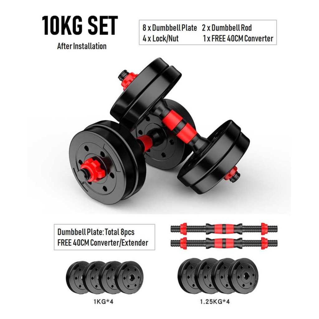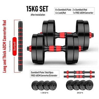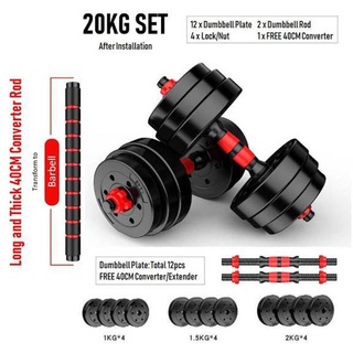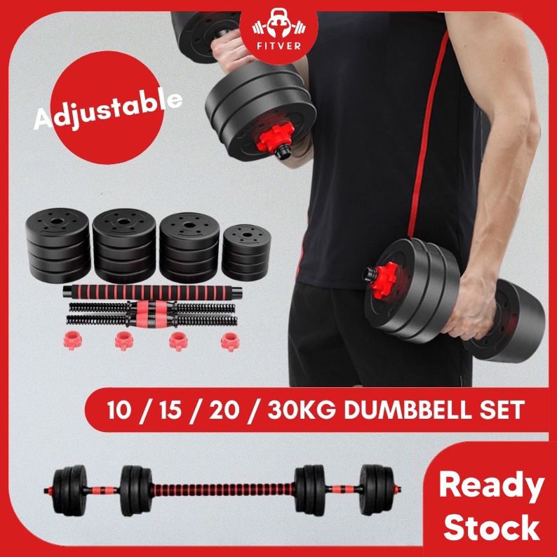 [Fitver] Dumbbell Bumper Plate Dumble Plate Dumbell & Adjustable Set Strength Gym 10kg/15kg/ 20kg/ 30kg + 40cm Connector
