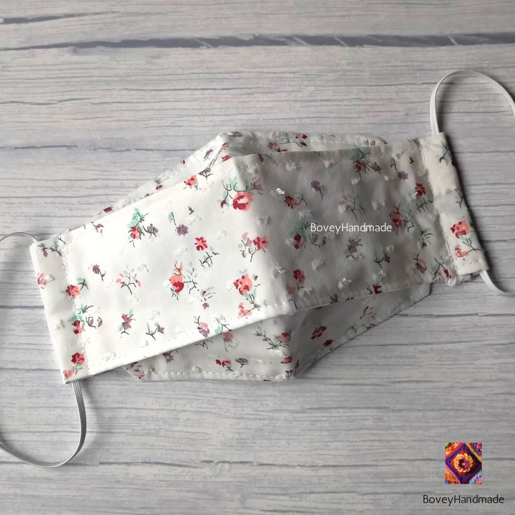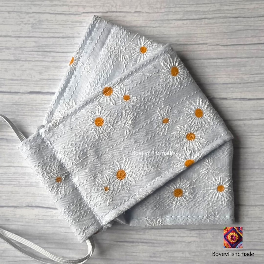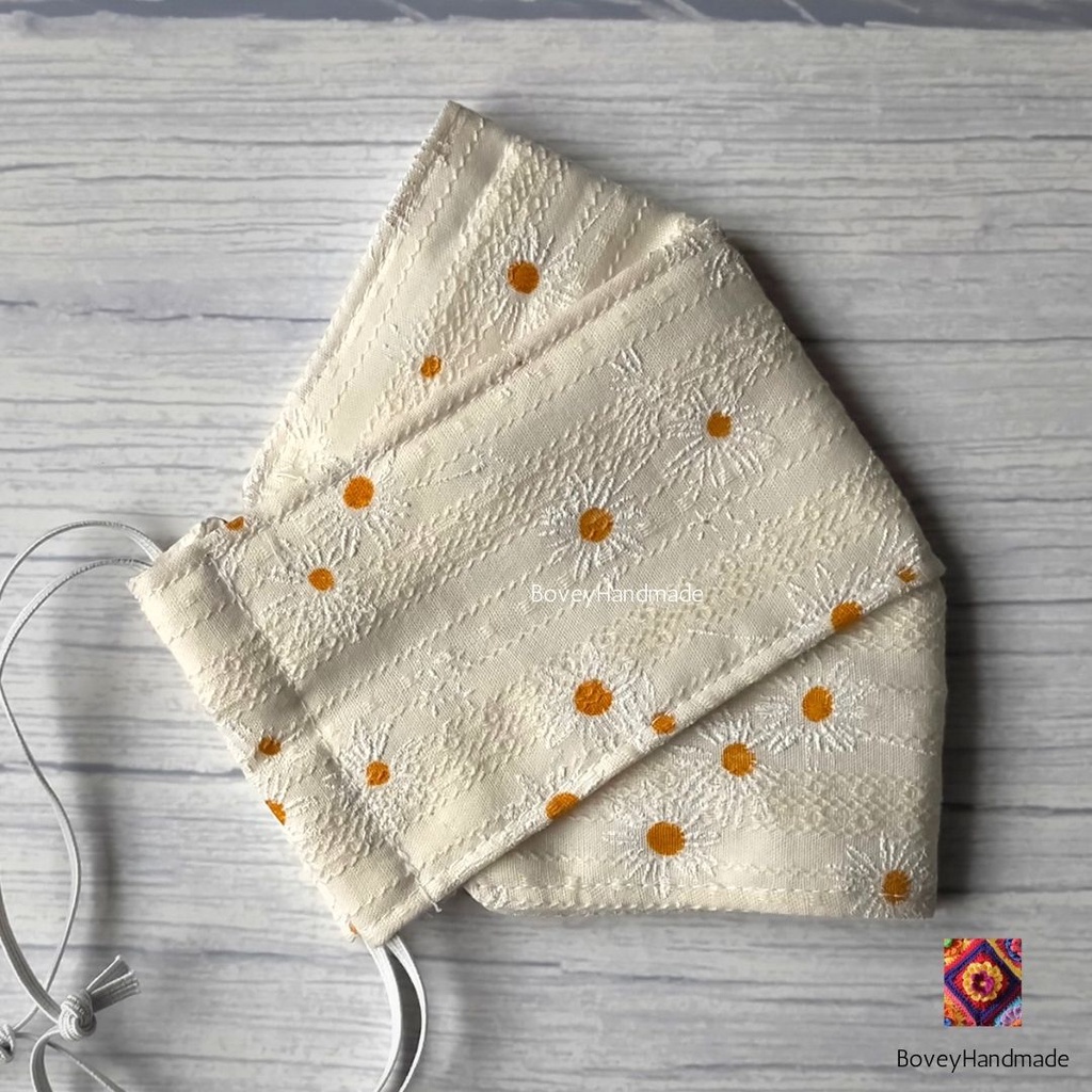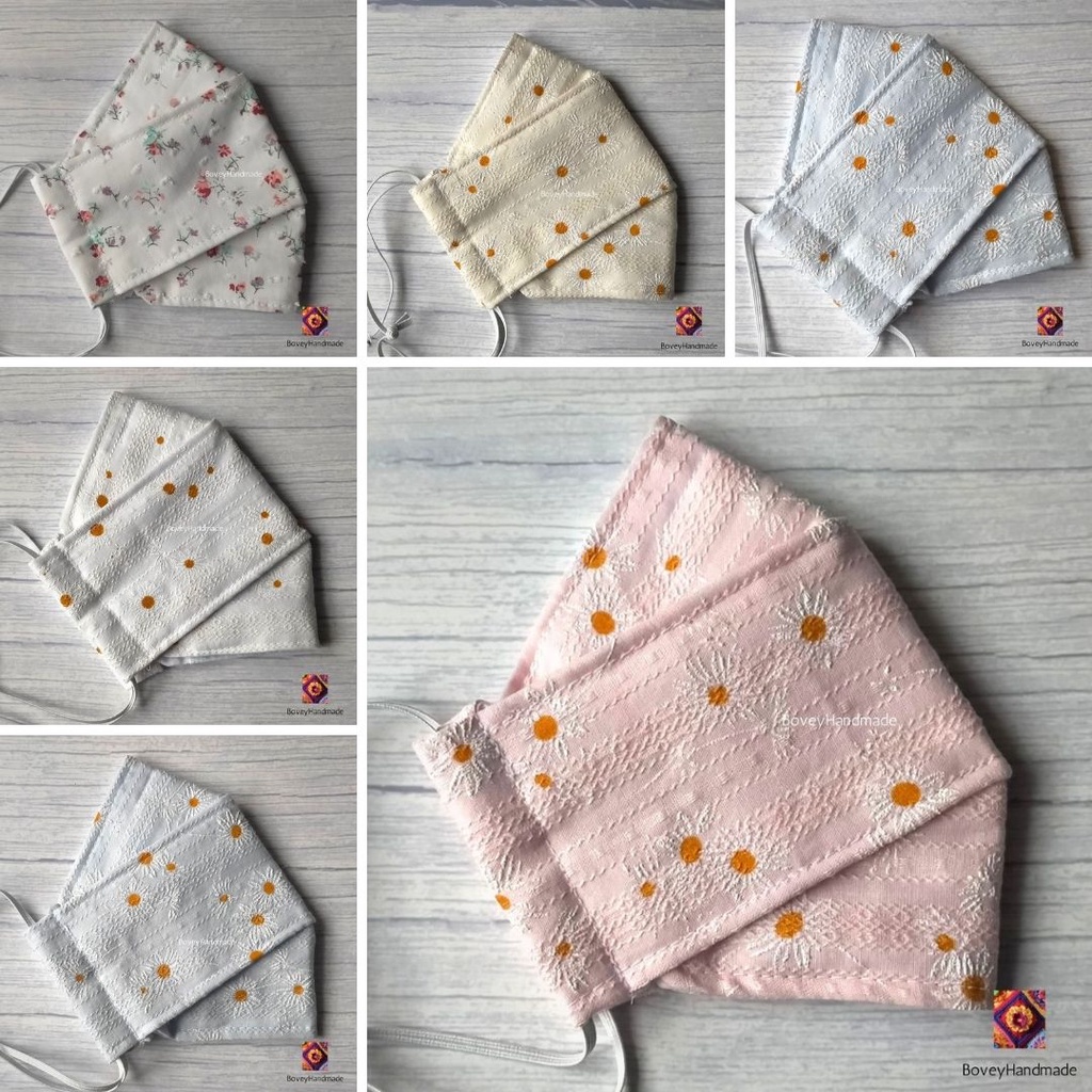 [For Adult] 3D Embroidered Cotton Fabric Face Mask / Pelitup Muka / 3 layers / with pocket for filter / / handmade