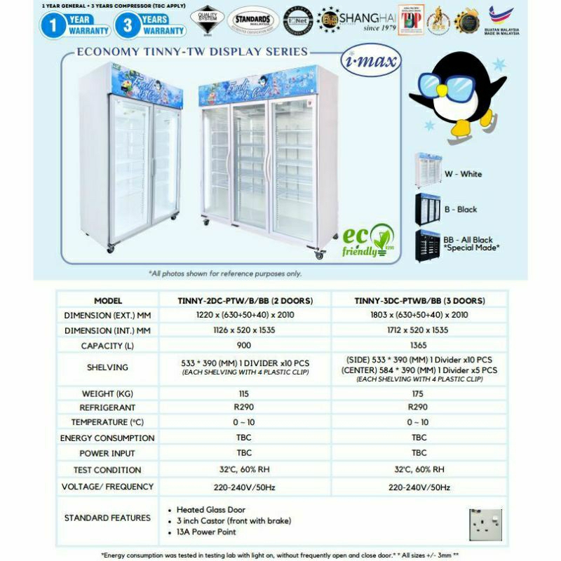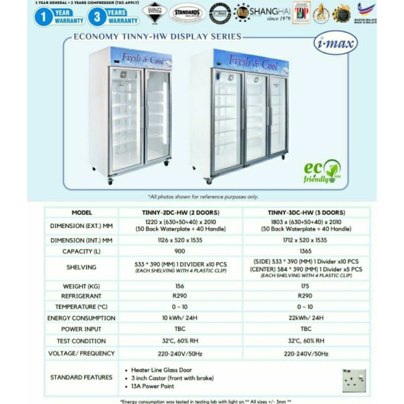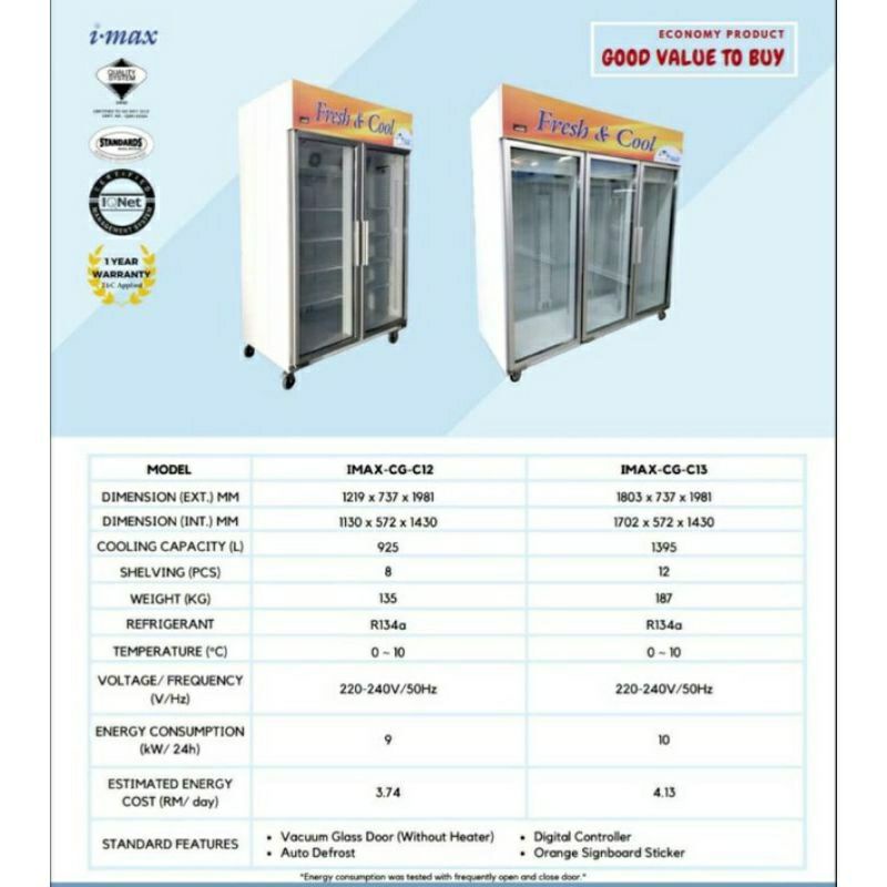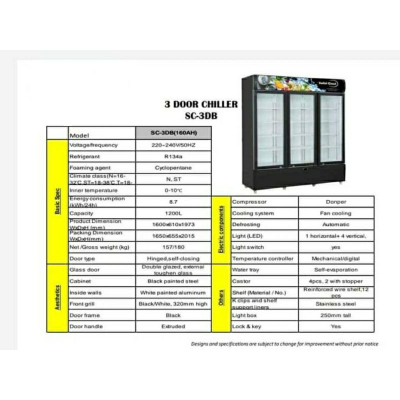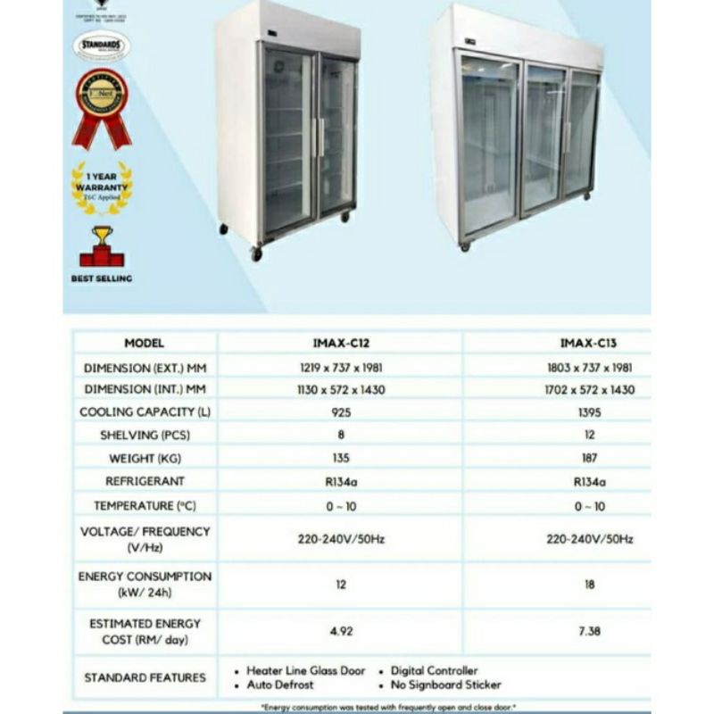 2 & 3 Door Display Chiller iMax-C13 3 Pintu SOLID COOL Chiller Cake/Flower Storage High Quality Chiller