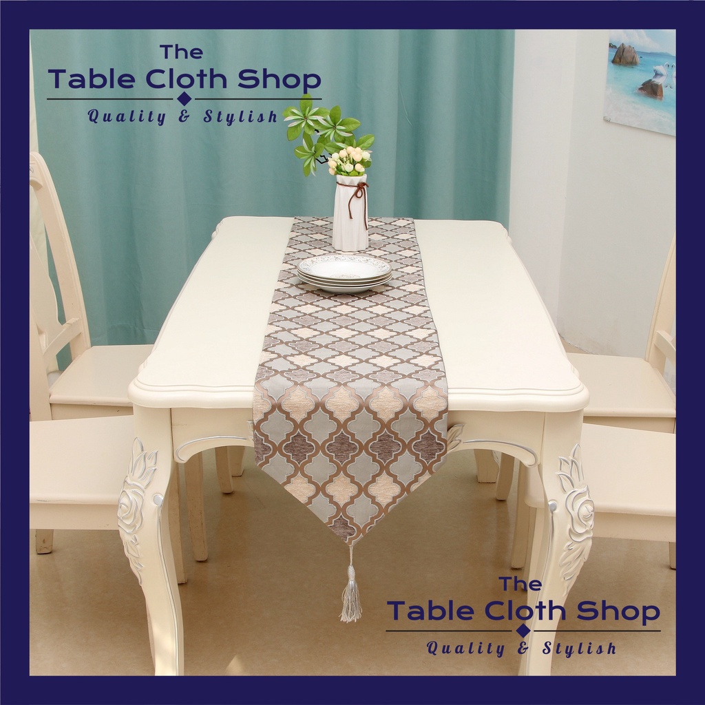 [From Johor] Popular Table Runner European New Classical Plaid Geometric Relief High-End Tailstock Tea Table
