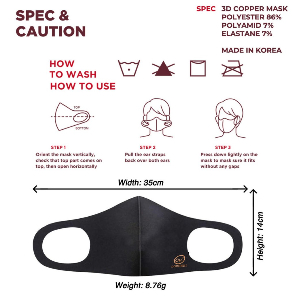[From Korea] Adult Lozperi Copper Face Mask FDA Approve Washabe Reusable Antibacterial 4 Layers 3D Medical